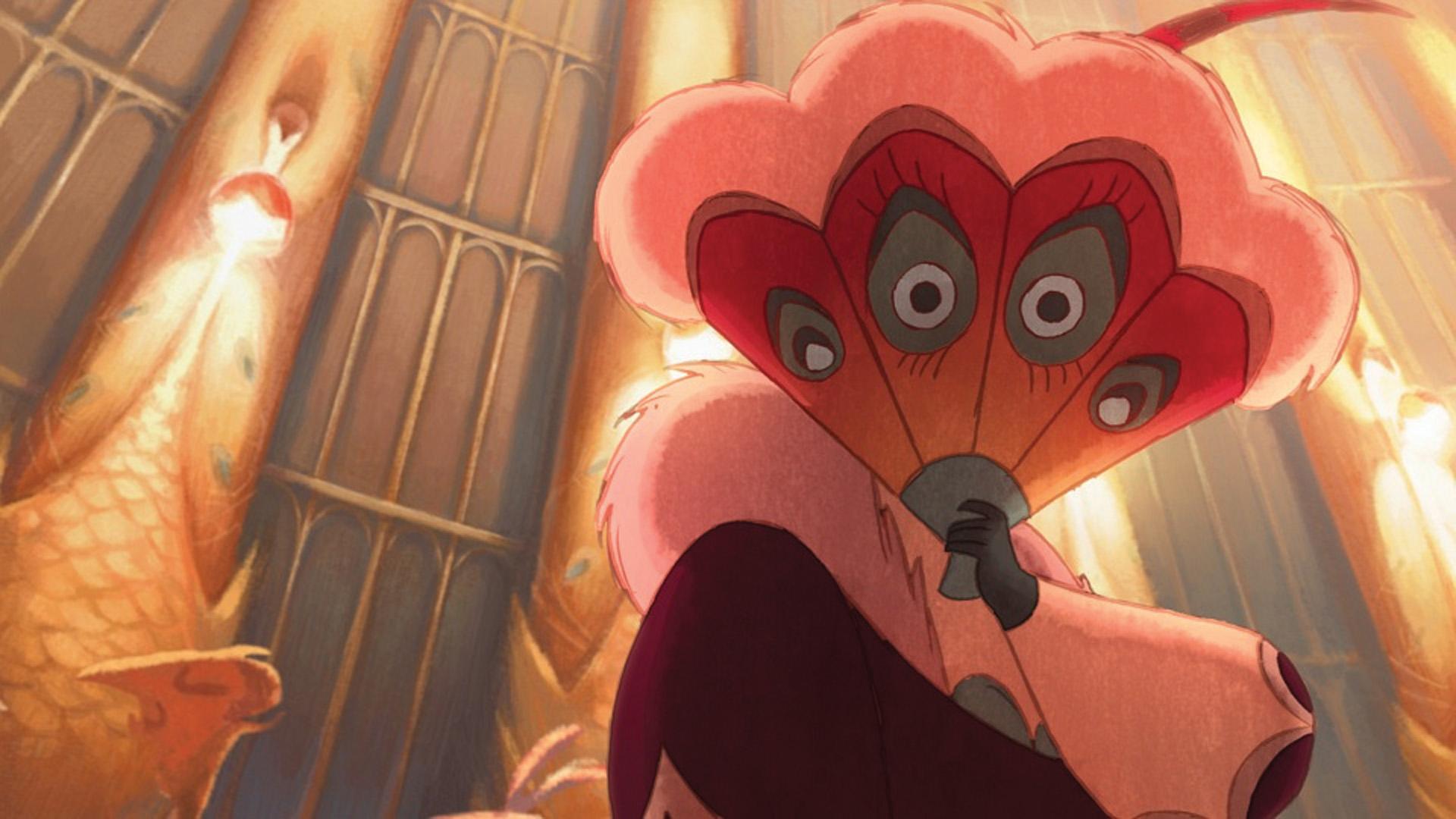 In their golden cage, among the feathered guests, a little bird and a fat turkey launch into a breeding, twirling dance, heralding the beginning of a delightful mating season. Feathers fl y during the mating dance, dance.