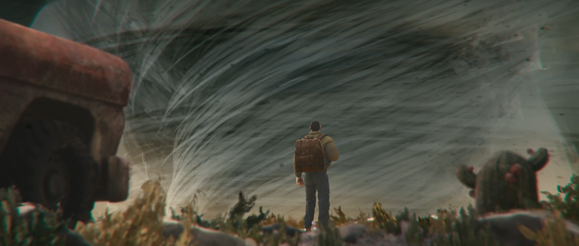 We developed a stylized 2D/3D pipeline mixing hand-painted textures, PBR materials, plane cards, and camera mapping. The tornado was a major challenge, we simulated it, then stylized it using plane cards. This project allowed us to refine a stylized 2D/3D pipeline adaptable for production use