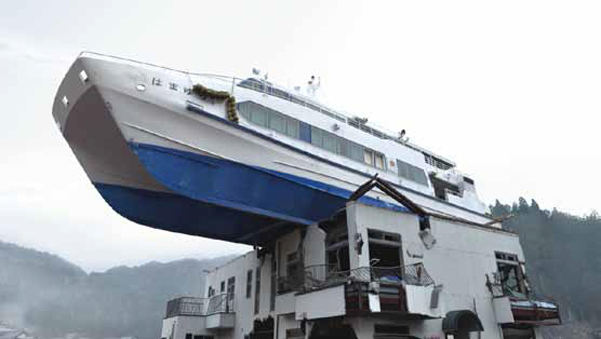 The tsunami carried Hamayuri on the roof of a inn.