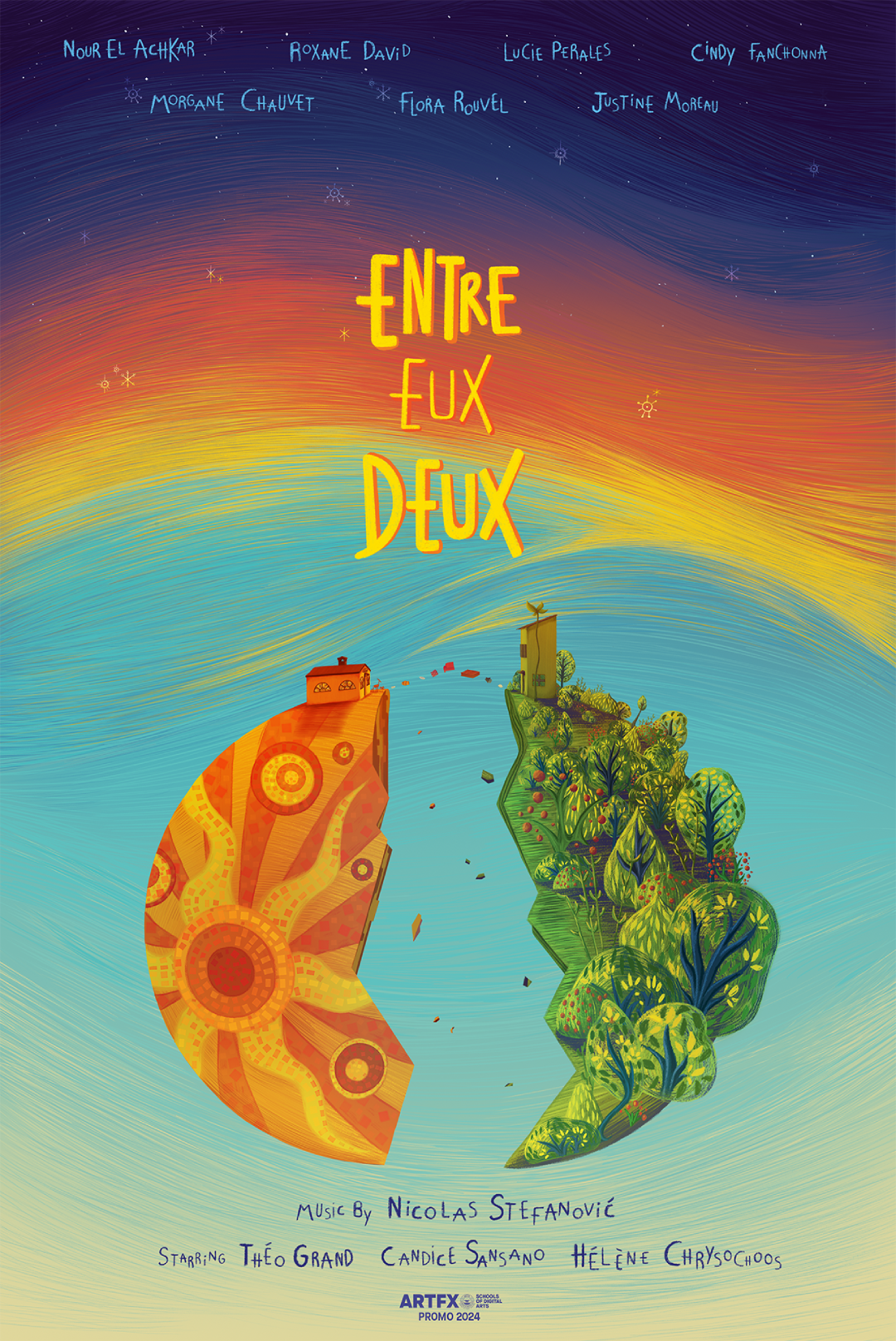 When little Nora’s parents split up, the Earth splits in two. She now has to juggle between both hemispheres to visit them. Problem is, the backpack she’s carrying is getting heavier and heavier…