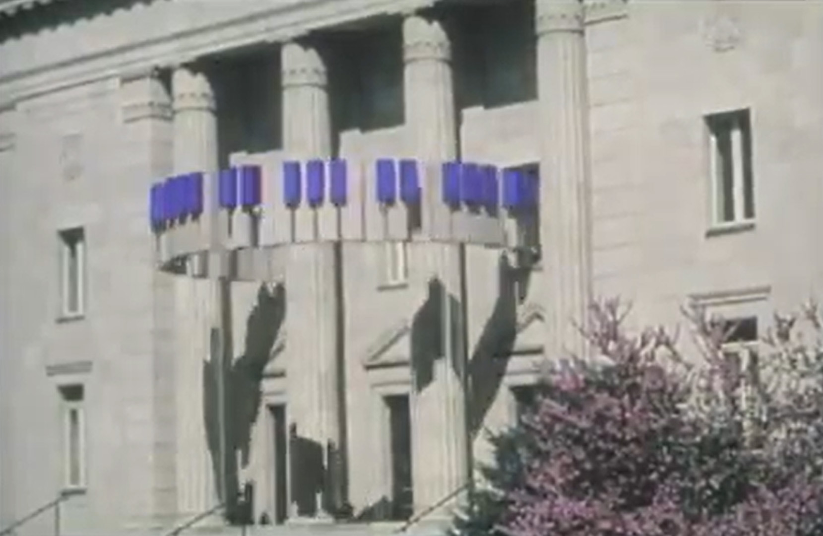 In this film computer generated objects appear to reside in a photographic background.The animated objects are obscured by and throw shadows on photographic objects. Models representing objects in the photo were created and used to obscure the animated objects with a ray tracing algorithm. The resulting image of the animated objects with photo-object shaped holes, is then composed over the original photo. A shadow mask, created for the regions of the photo that are shadowed by animated objects, is applied to the photo image by inverting a simple shading equation. This work was performed as part of the Alpha-1 research project at the University of Utah. The ray-tracer is an extension of the Alpha-1 software. The objects are B-spline surfaces created with the Alpha-1 Modeling Systems. The final motion blurred frames were generated on forty HP 320 workstations at the university during idle hours.
