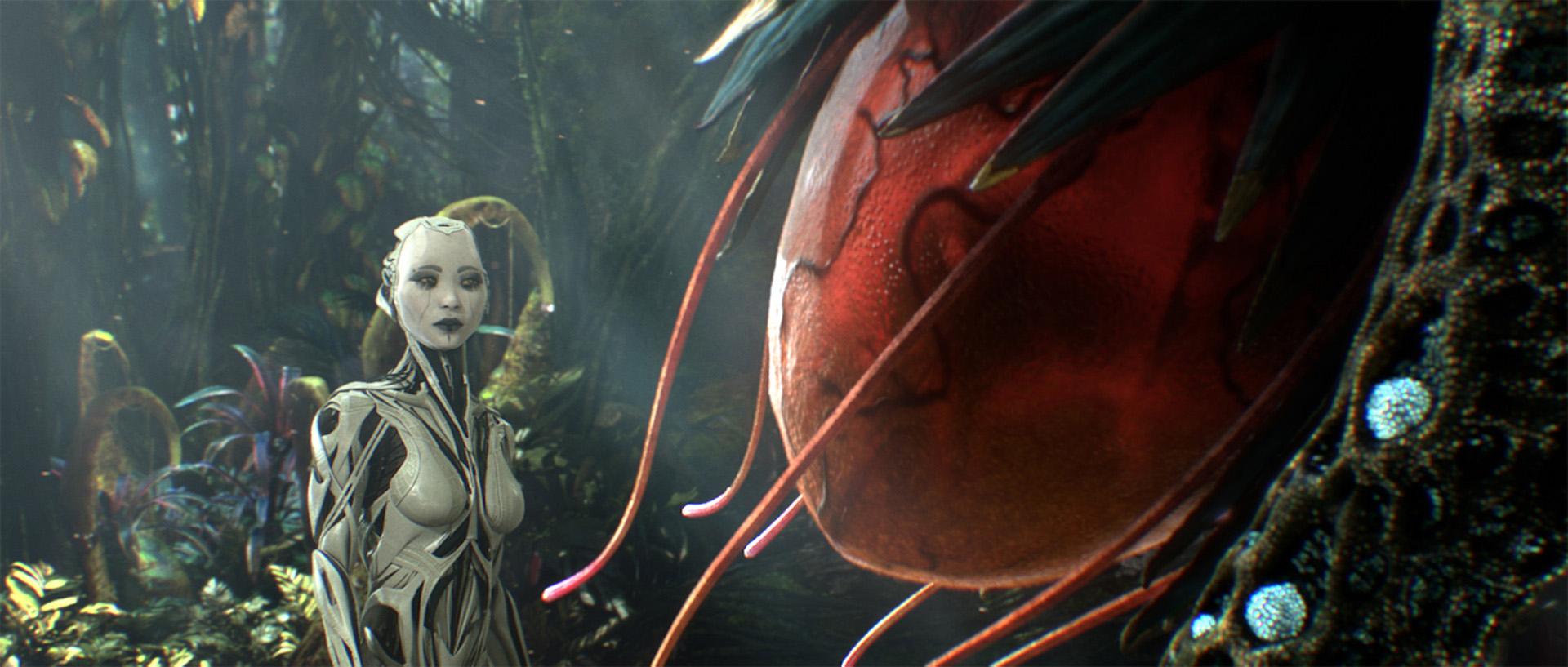 EA, semi-humanoid semi-technical origin, walks through the native forest.