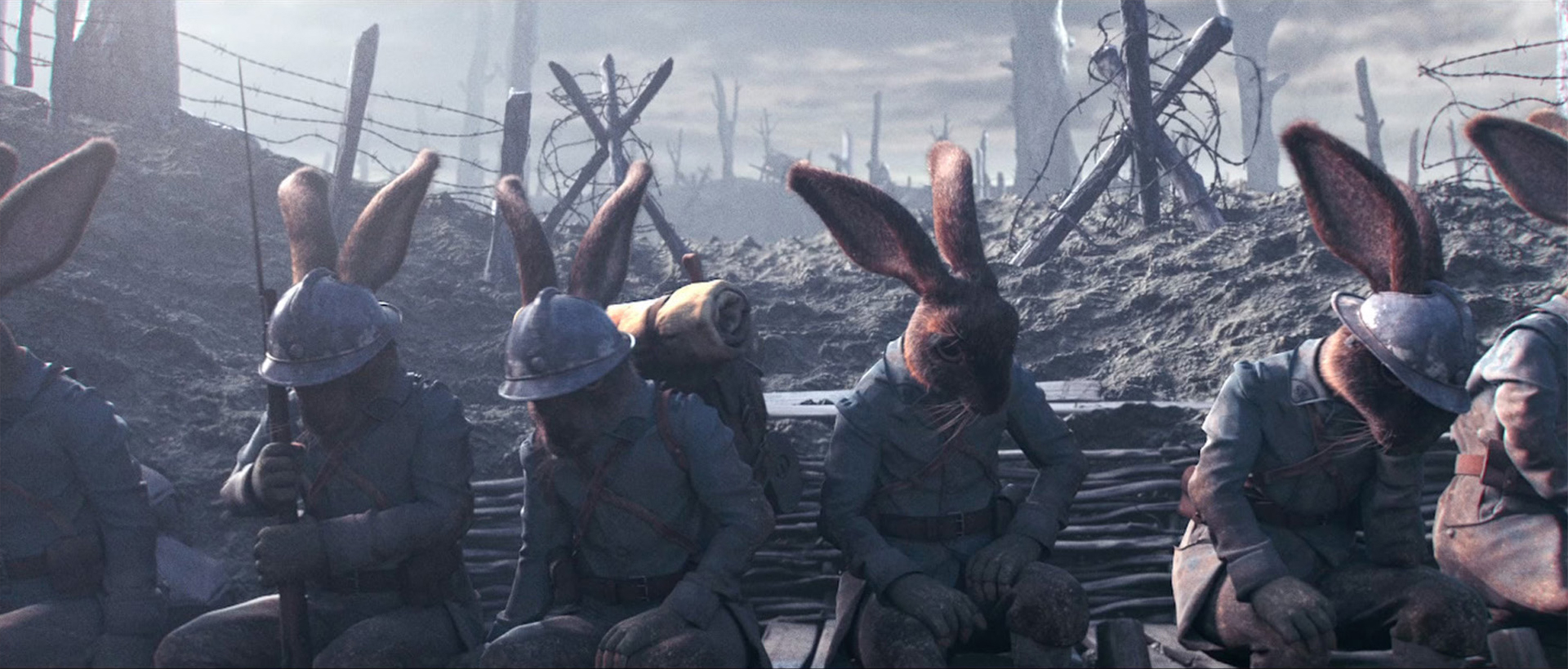 In the French trenches, calm reigns. The ‘Poilus’ are waiting to leave for the battlefield. Among them, Ferdinand, a young hare, is playing the harmonica. A whistling signal is given, the attack begins. It’s on the no man’s land that he first encounters his enemy, a horrible creature.