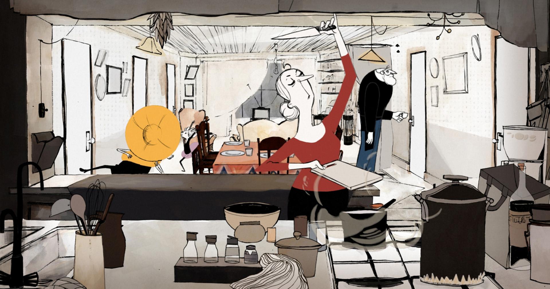 The mother, acting as an orchestra’s conductor, tries but without success, to gather all of them around the same table for dinner.