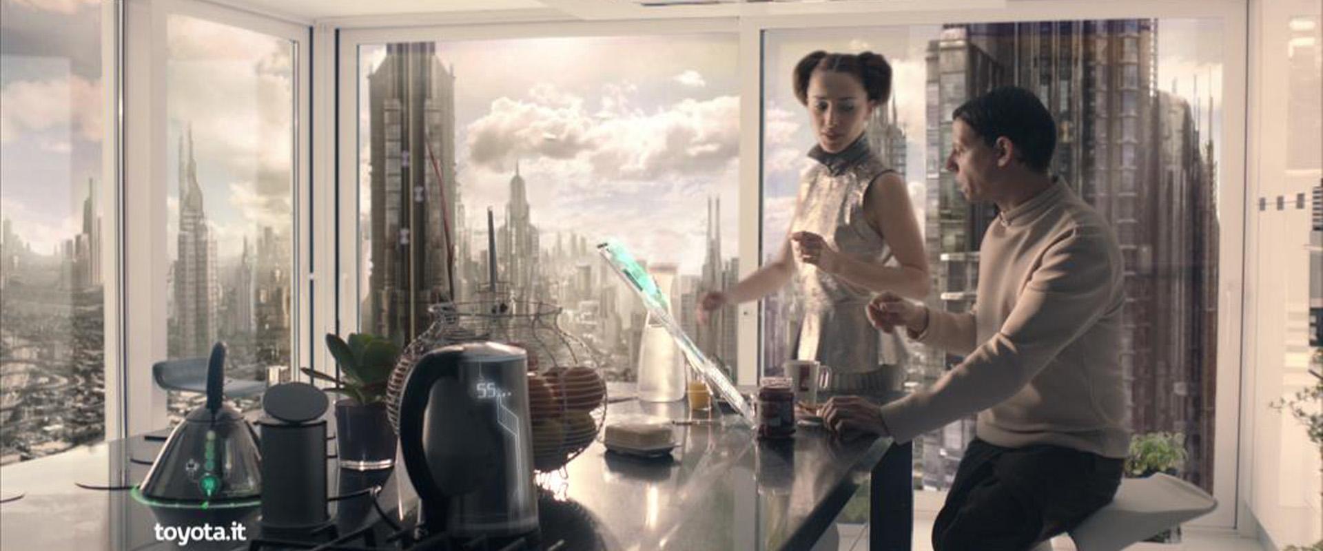 New Toyota hybrid campaign. In a futuristic city where everything is highly developed, cars are still from 30’s. “No world will be truly advanced if automobile technology goes unchanged.”