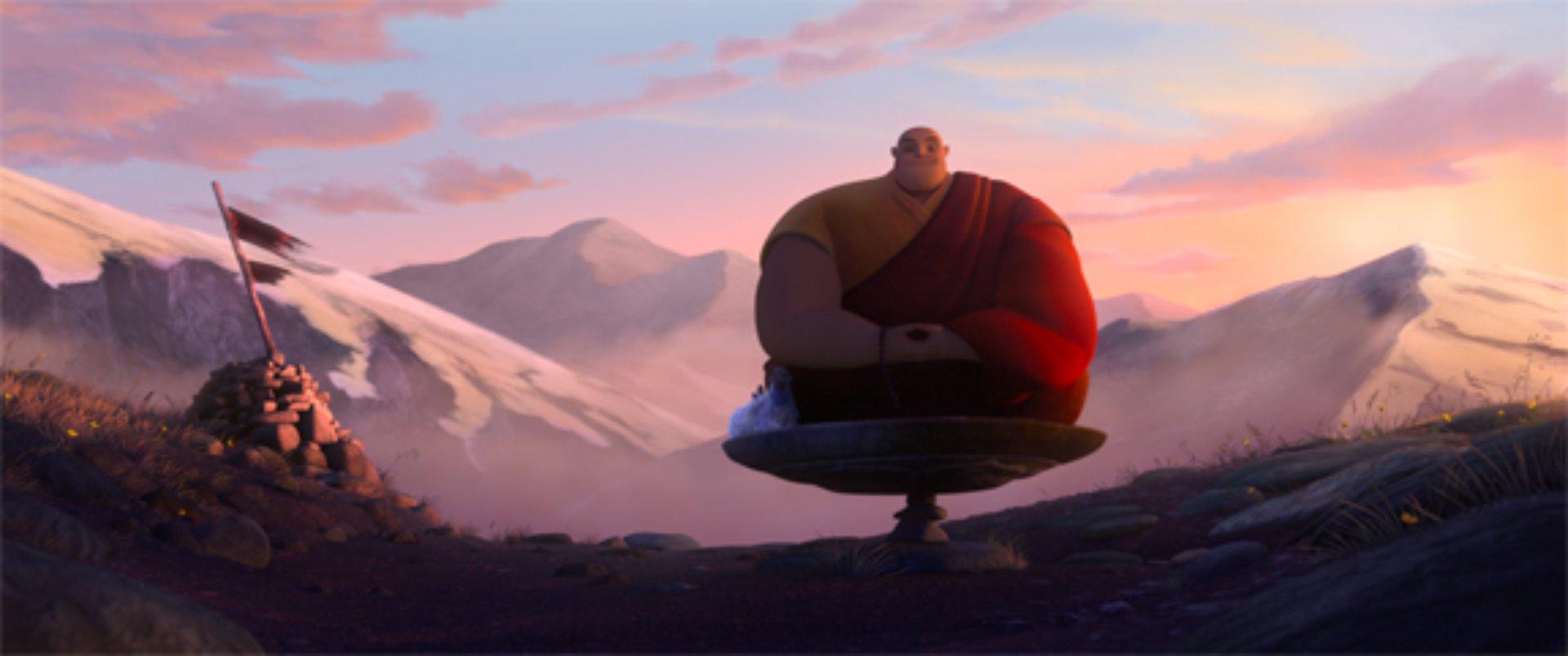 Comic interpretation of a meditative pilgrimage of a monk, a mosquito and a hen.