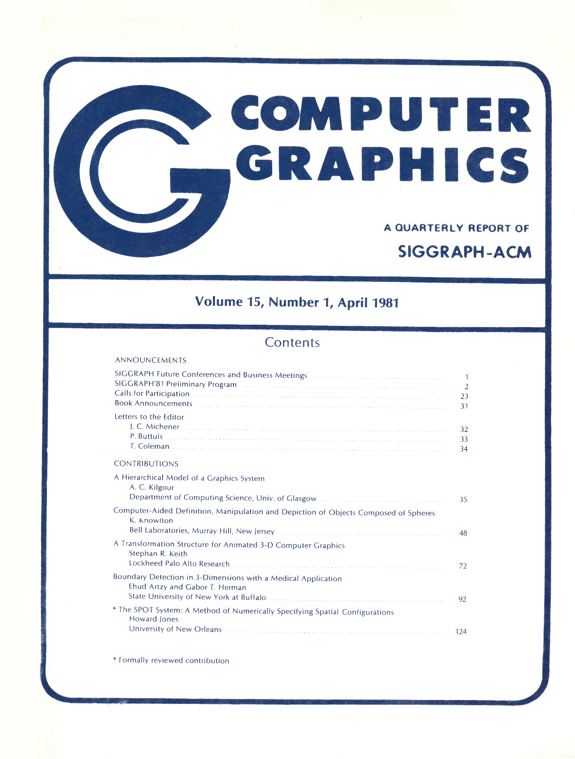 “Computer Graphics A Quarterly Report of the SIGGRAPH-ACM”, Apr 1981, Vol. 15, No. 1