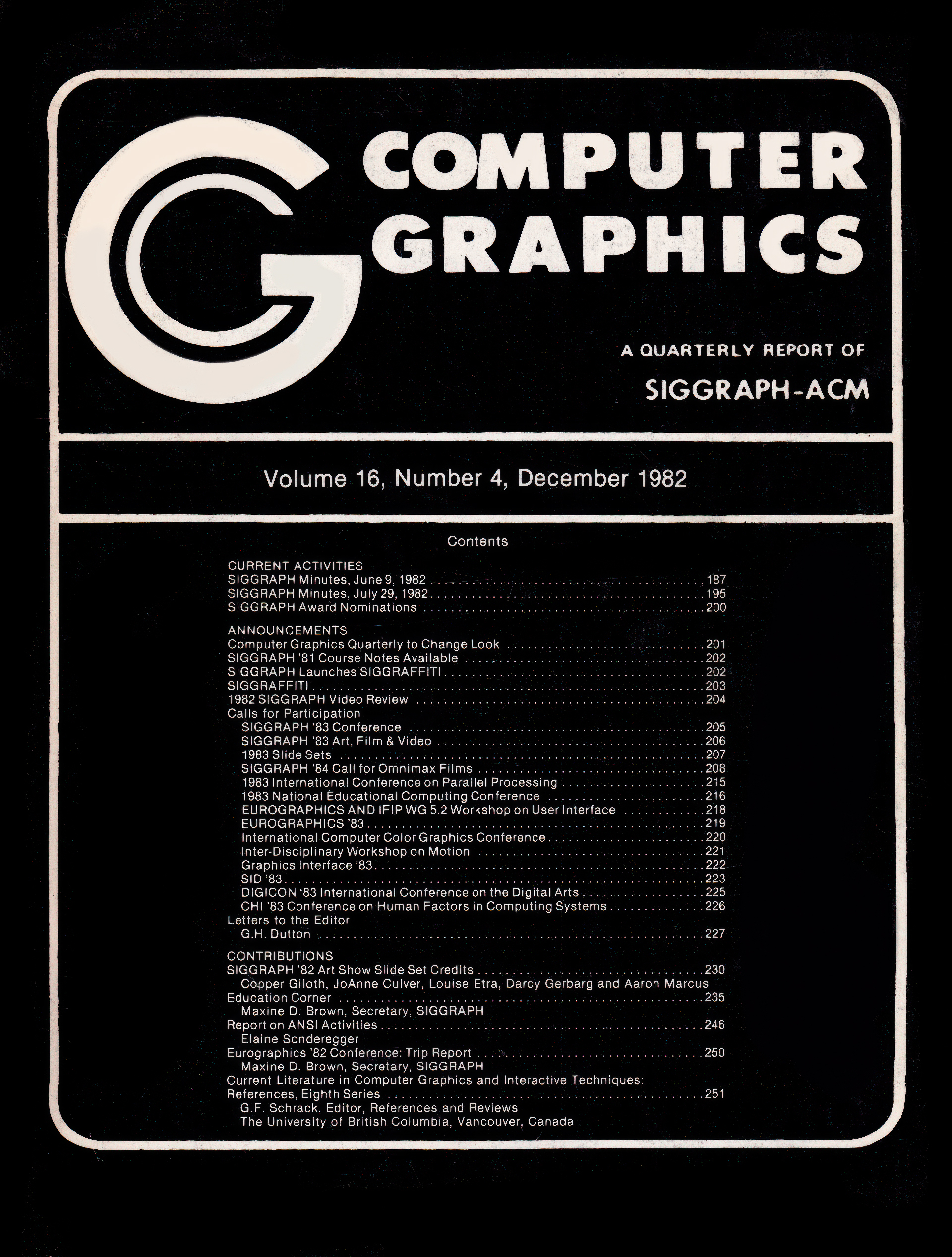 “Computer Graphics A Quarterly Report of the SIGGRAPH-ACM”, Dec 1982, Vol. 16, No. 4