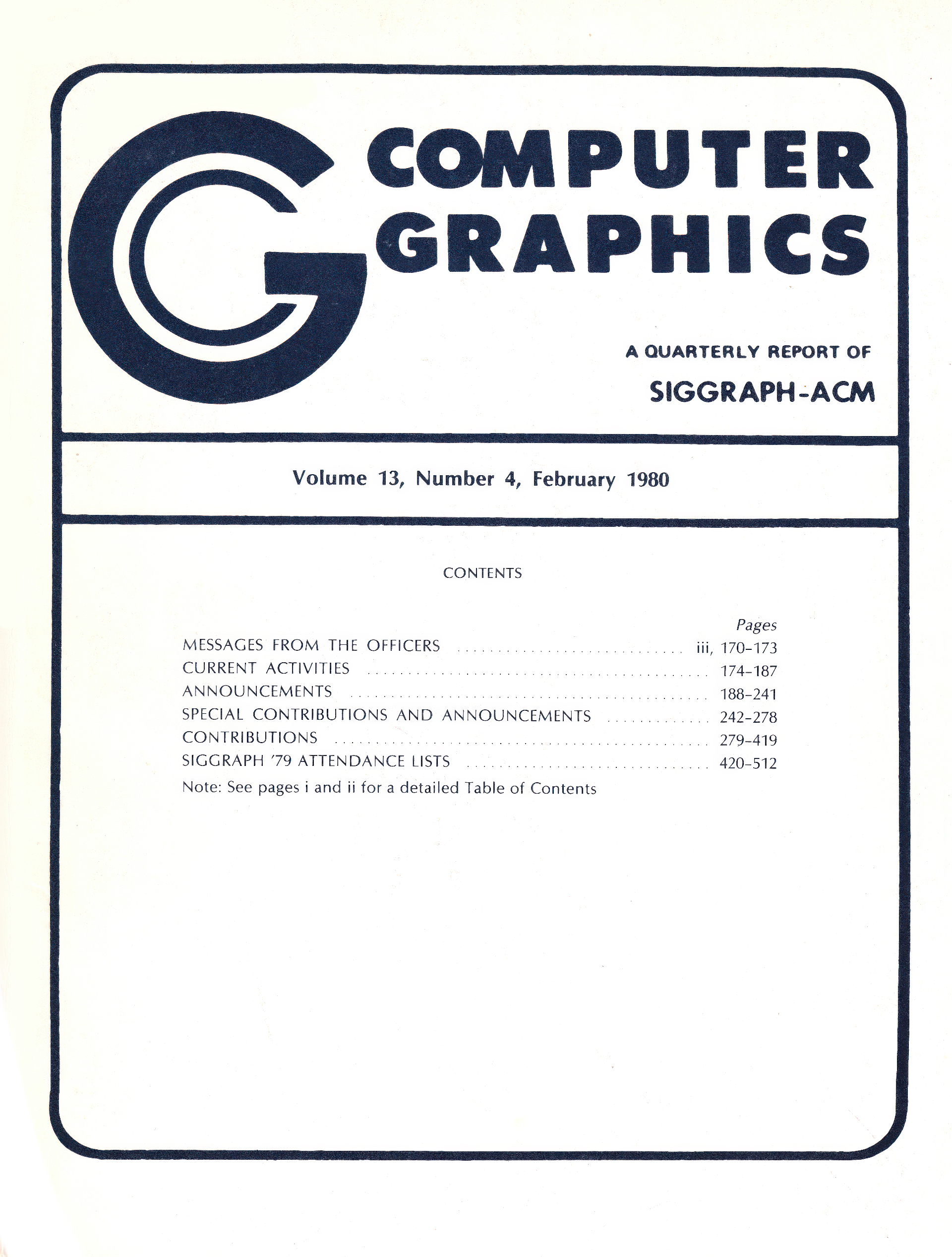 “Computer Graphics A Quarterly Report of the SIGGRAPH-ACM”, Feb 1980, Vol. 13, No. 4
