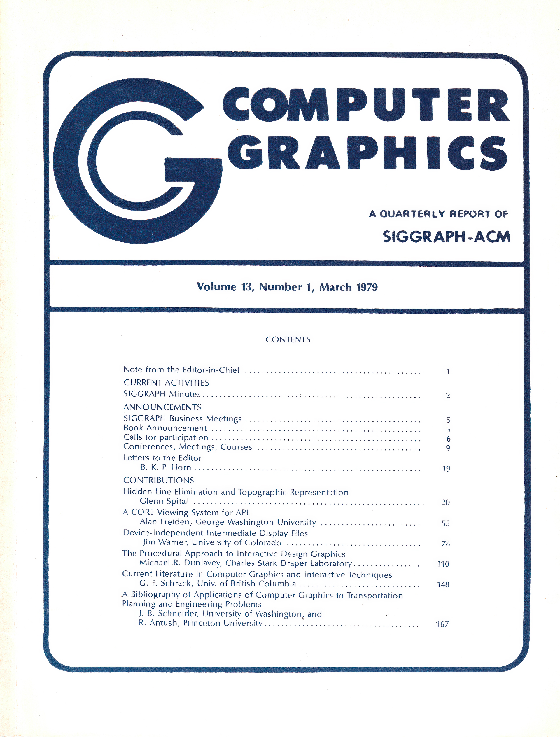 “Computer Graphics A Quarterly Report of the SIGGRAPH-ACM”, Mar 1979, Vol. 13, No. 1 – ACM SIGGRAPH HISTORY ARCHIVES