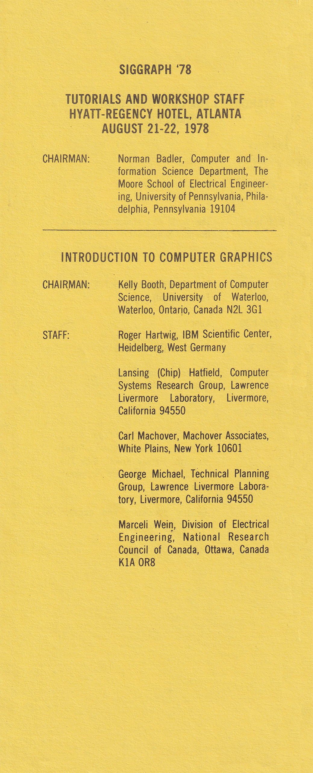 “SIGGRAPH 1978 Tutorial and Workshop Program”, 1978