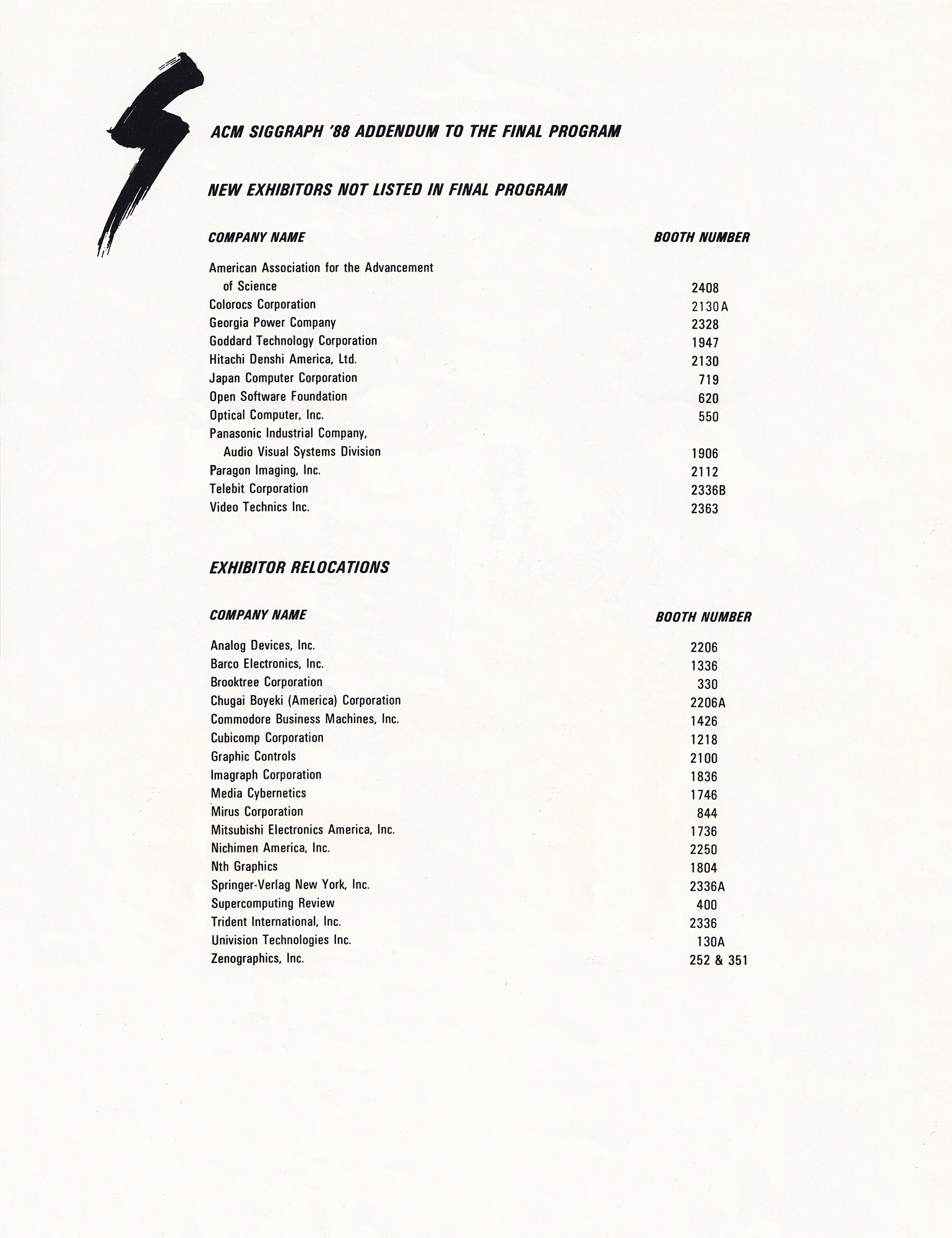 “SIGGRAPH 1988 Addendum to the Final Program”, 1988