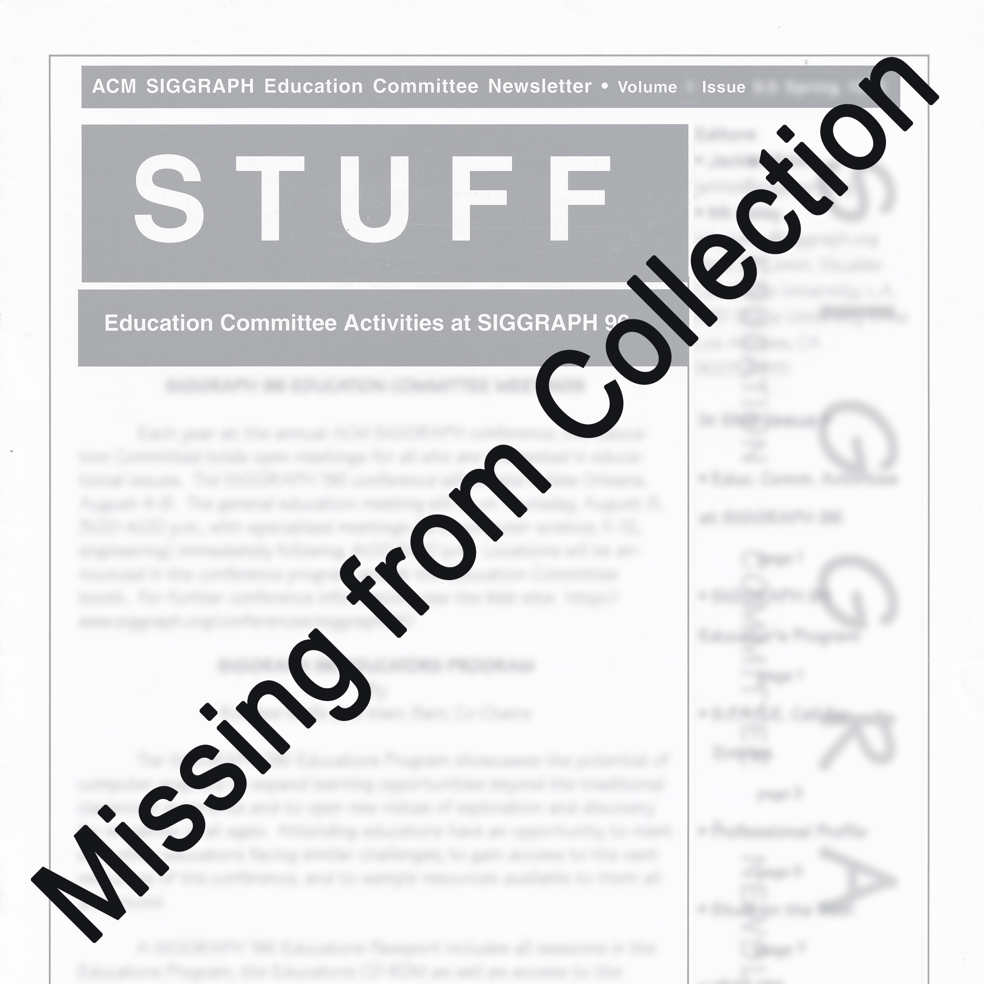 “STUFF: ACM SIGGRAPH Education Committee Newsletter”, Fall 1996, Vol. 1, No. 11