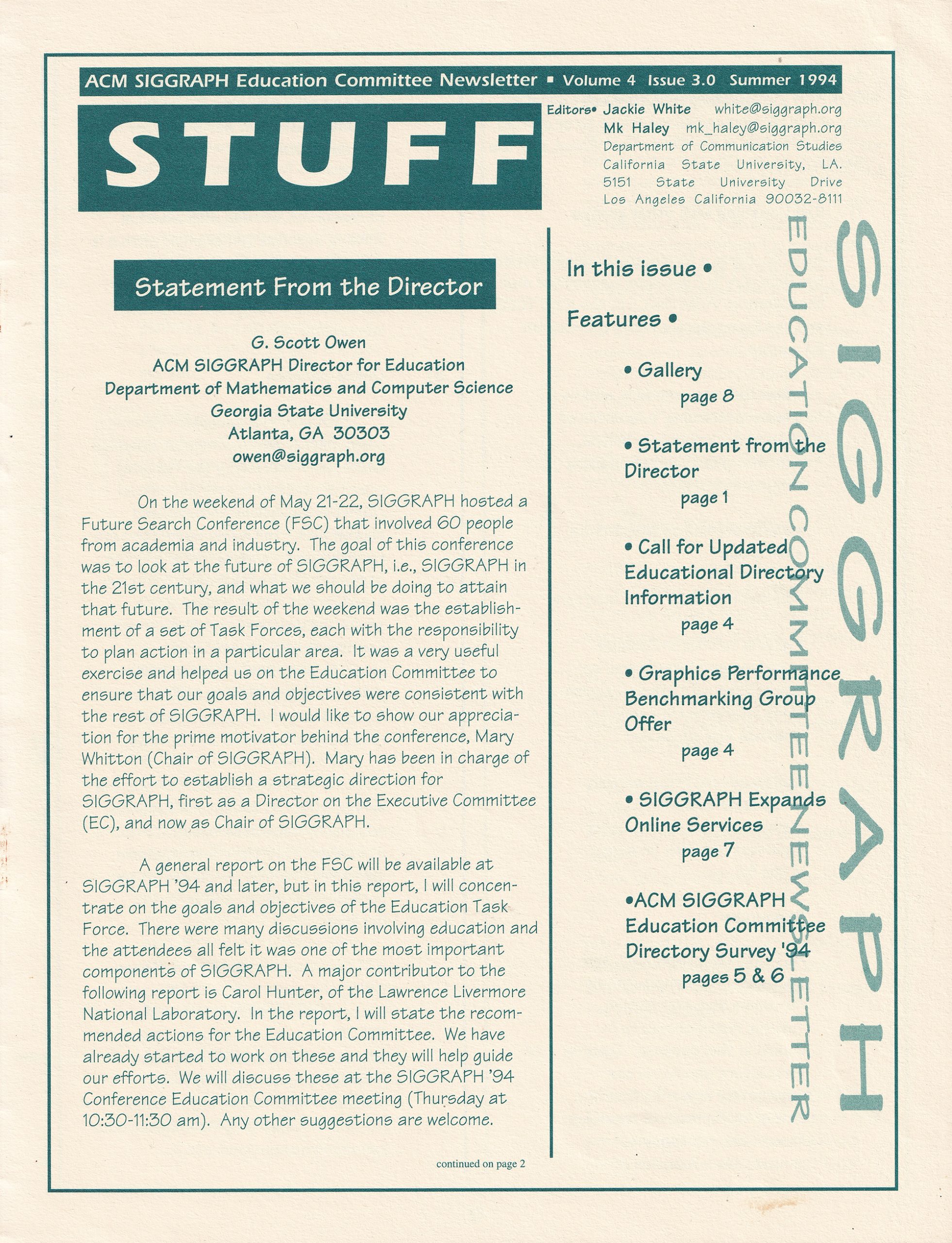 “STUFF: ACM SIGGRAPH Education Committee Newsletter”, Summer 1994, Vol. 1, No. 3 – ACM SIGGRAPH HISTORY ARCHIVES