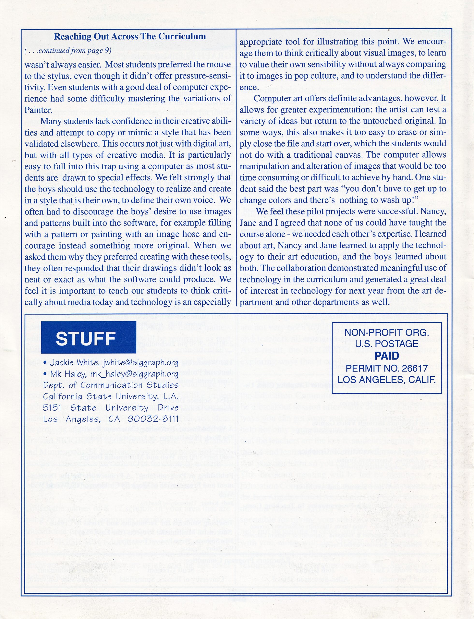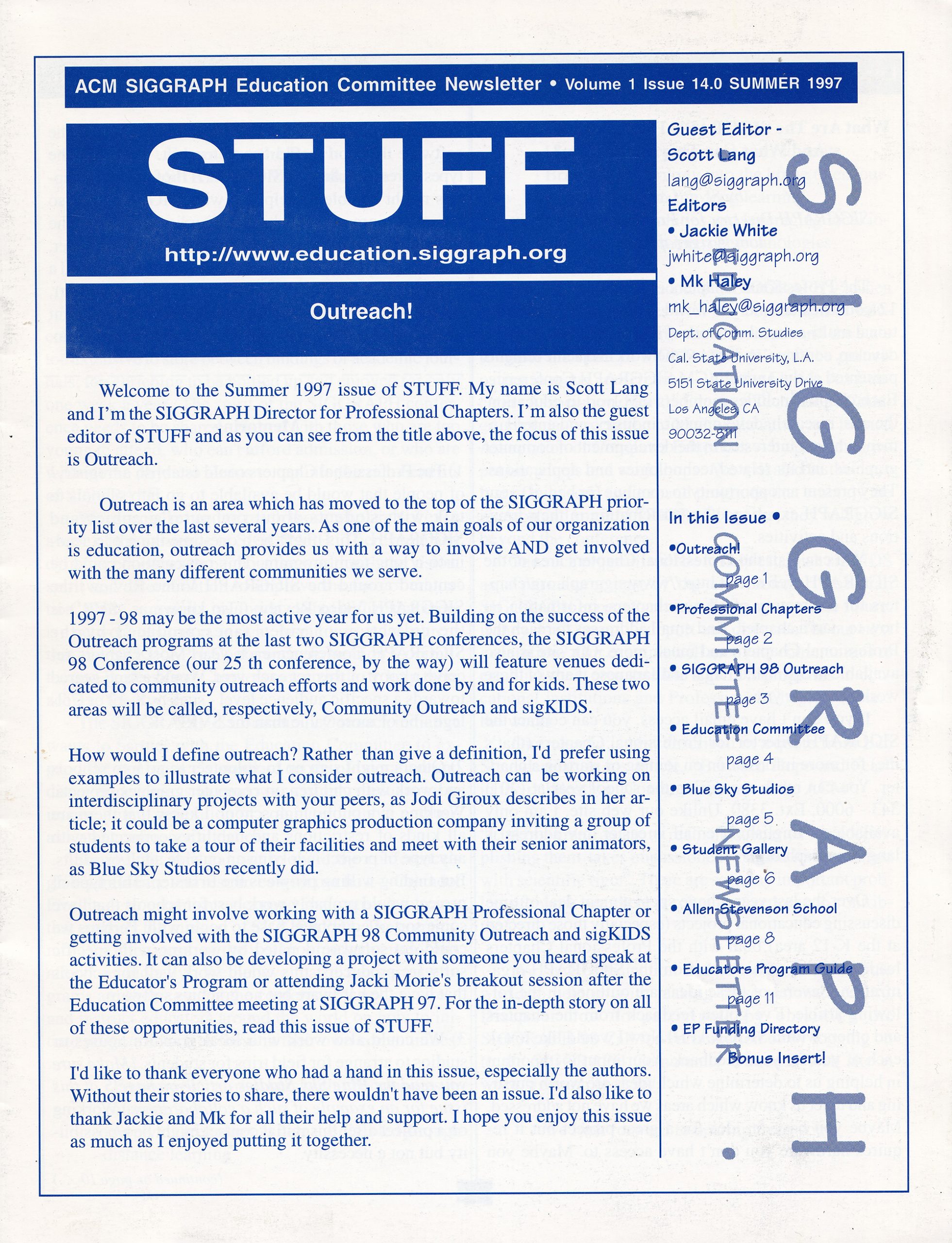 “STUFF: ACM SIGGRAPH Education Committee Newsletter”, Summer 1997, Vol. 1, No. 14