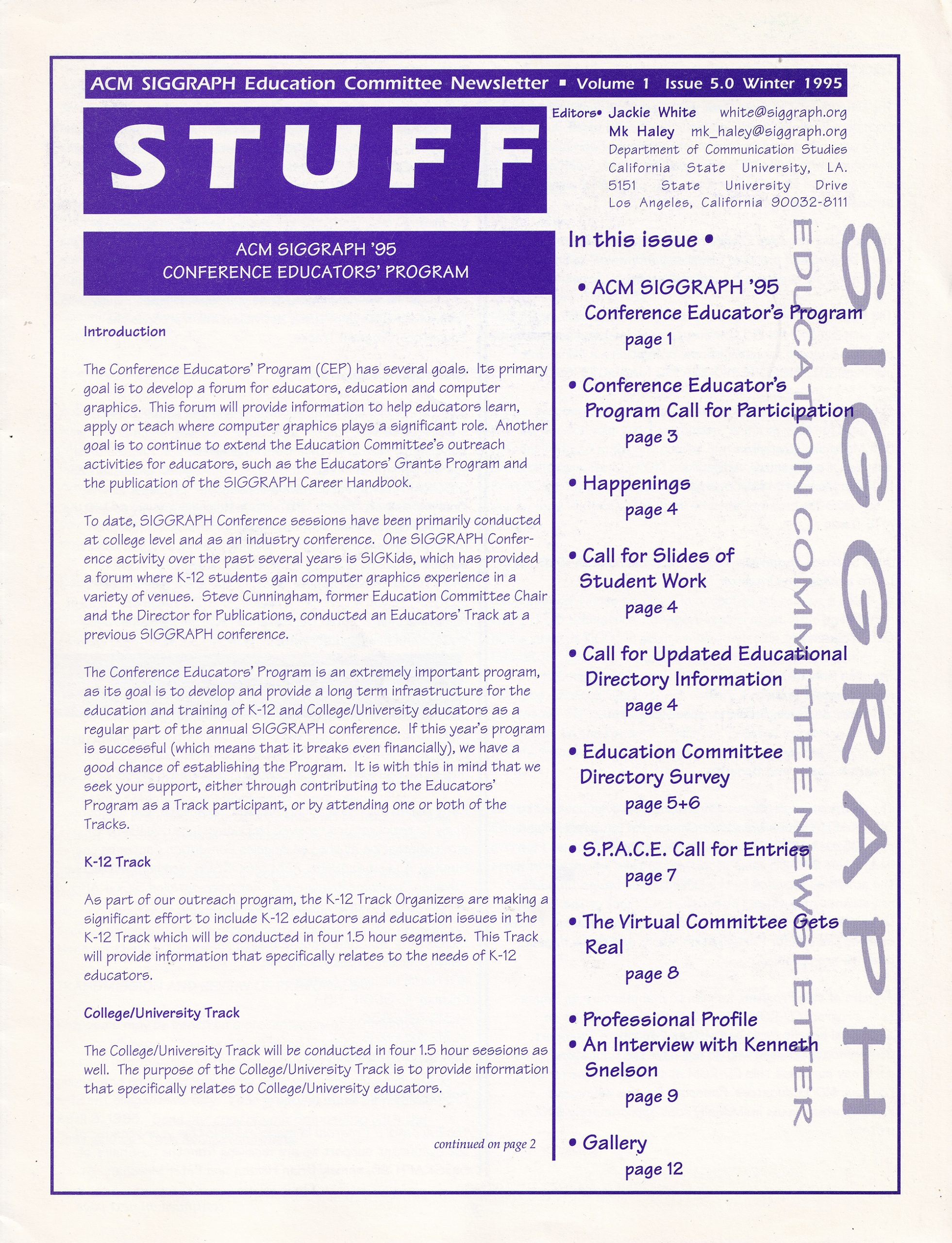 “STUFF: ACM SIGGRAPH Education Committee Newsletter”, Winter 1995, Vol. 1, No. 5