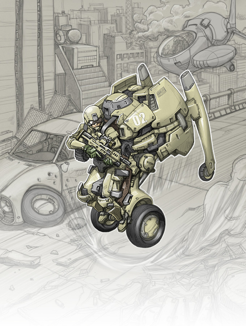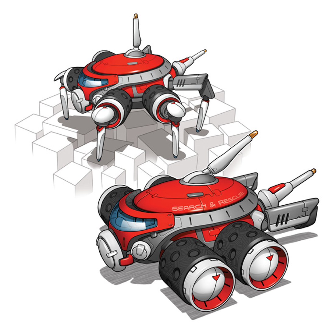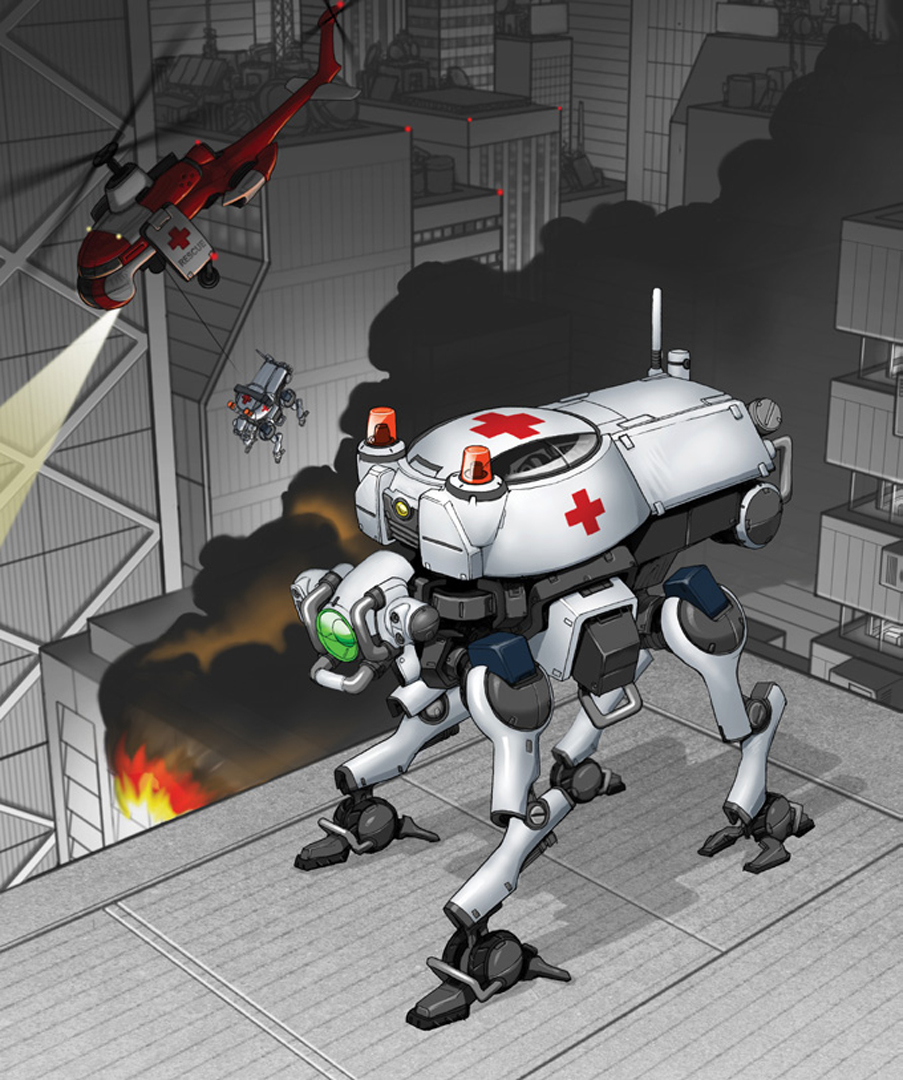 Above: The military 2 wheeler. Cover art for magazine ‘Techtimes’ 2008. below: Rescue robots. Cover art for magazine ‘Techtimes’ 2008.