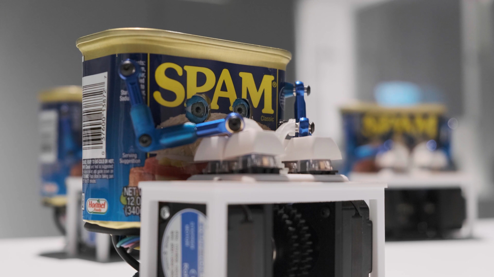 Spambots explores what would happen if machine learning was used to empower a group of robotic Spam cans to tell their tales.