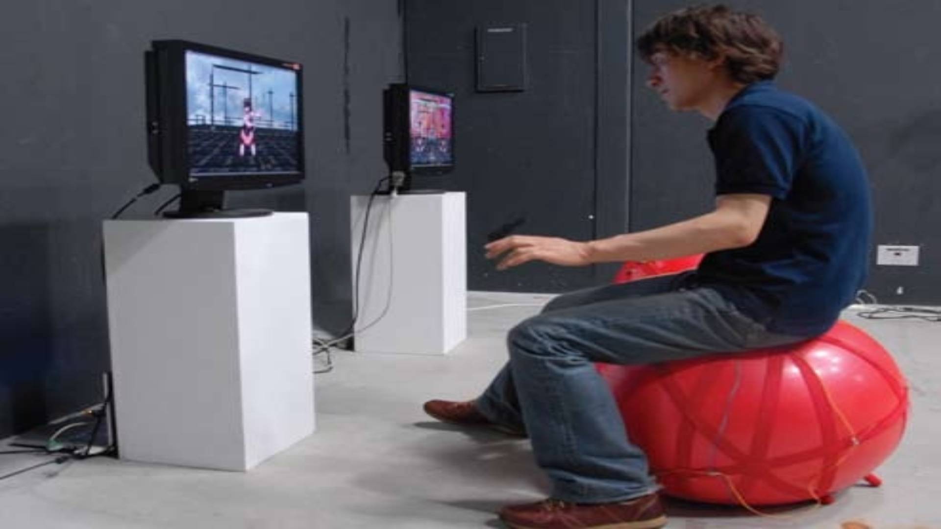 A user-interface device for exercise and entertainment. As users move while sitting on the balance ball, the system captures their motion and behaviour.