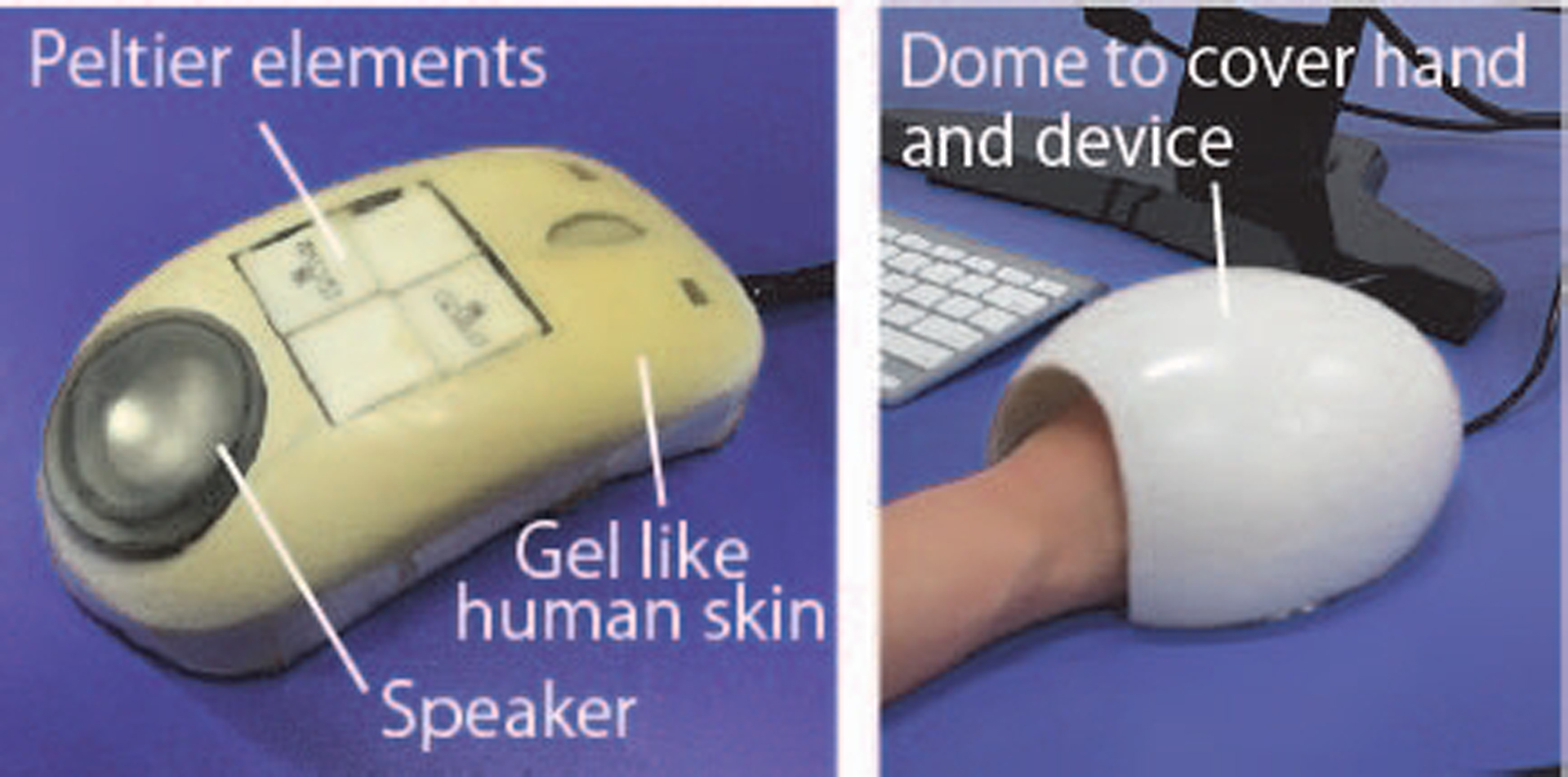 Sato, K., and Maeno, T. 2013. Presentation of rapid temperature change using spatially divided hot and cold stimuli. JRM 25, 3, 497–505.