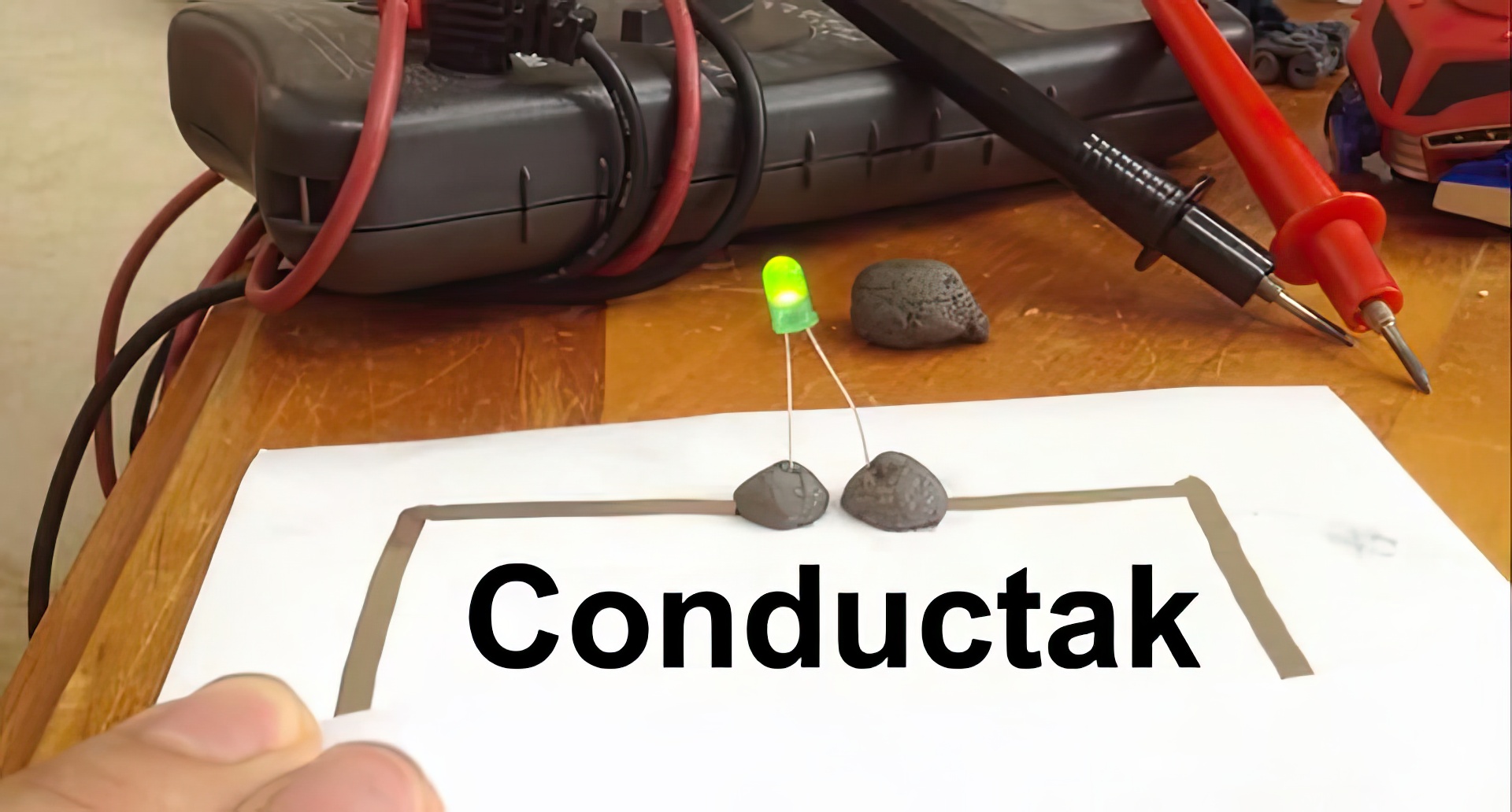 Conductak is an electrically conductive sticky tack that is used to prototype circuits and mount electronic components practically anywhere!