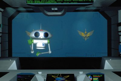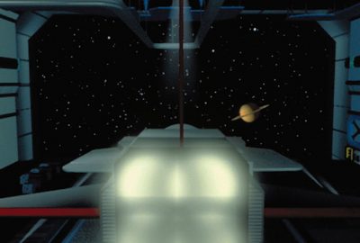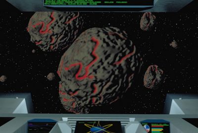 This simulation program was developed as a children’s attraction for a municipal science museum. The scale of the venue did not permit a 60-fps projection system or computer-controlled moving seats. The system uses a network of personal computers to create a simulated experience that involves children in imaginative team play in an exciting space adventure.