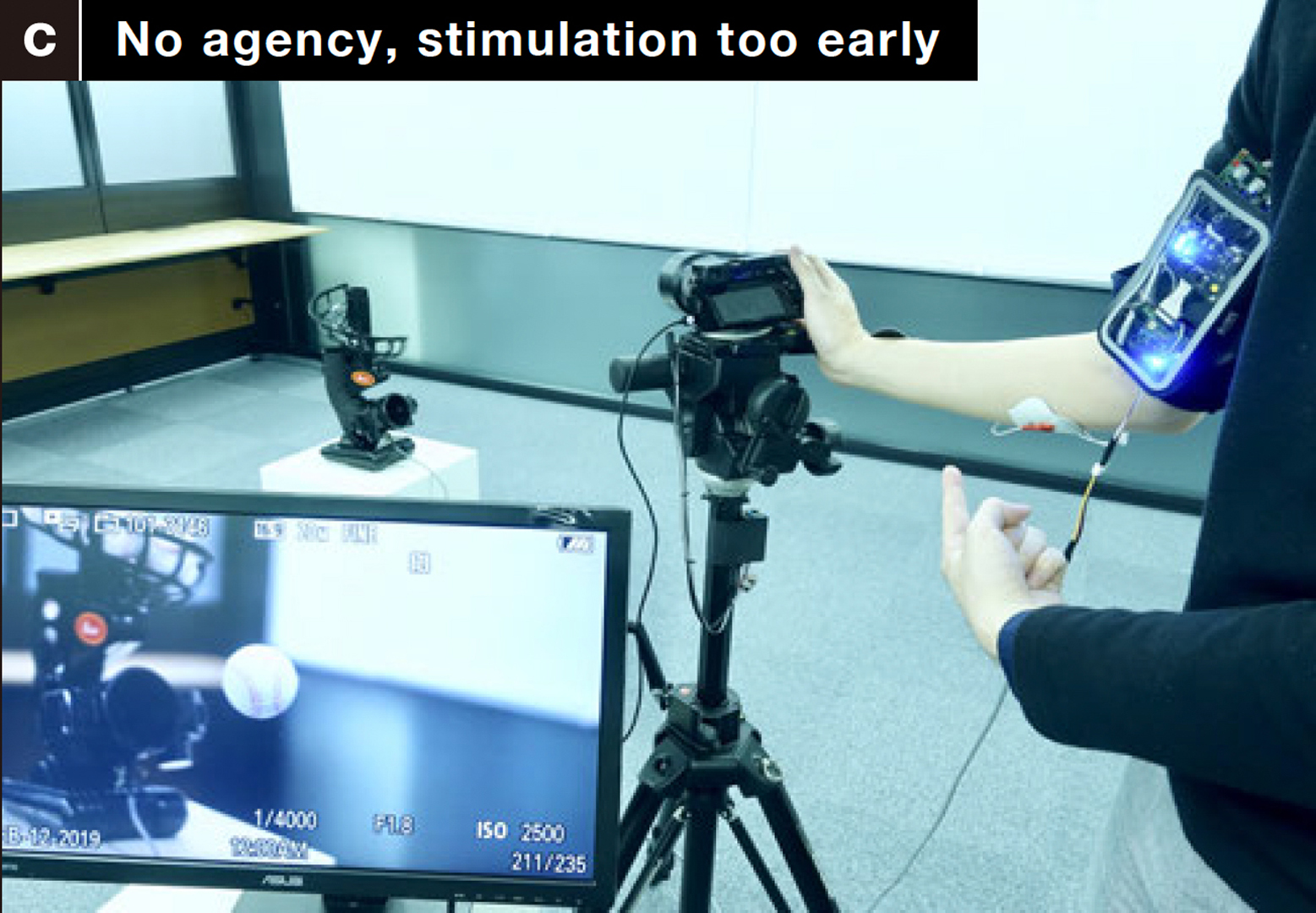 We enable preemptive force-feedback systems to speed up human reaction time without fully compromising the user’s sense of agency by means of electrical muscle stimulation (EMS). We demonstrate this with two example applications: (1) Taking a picture of a high-speed moving object, or (2) hitting a baseball with a toy gun.