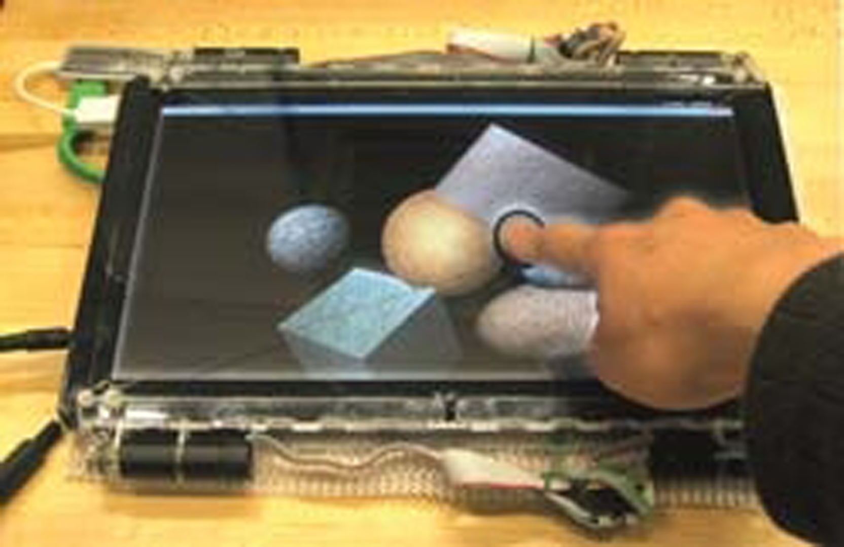 Wang, D., Tuer, K., Rossi, M., and Shu, J. 2004. Haptic overlay device for flat panel touch displays. In Proceedings of 12th International Symposium on HAPTICS’04, IEEE, 290.