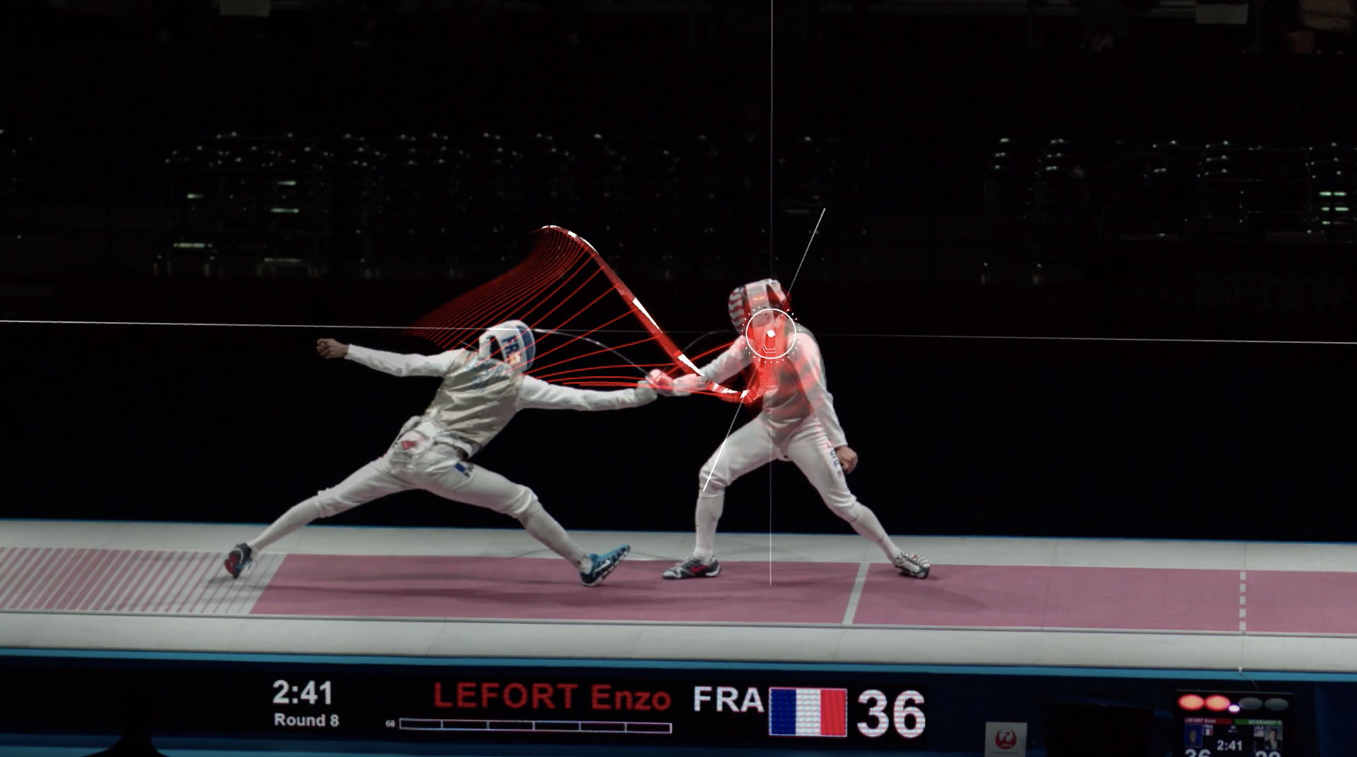 We developed the “Fencing tracking and visualization system.” It detects sword tips without any markers by utilizing a specialized object detector with convolutional neural network, and it utilizes real time AR synthesis to instantly visualize the trajectory.