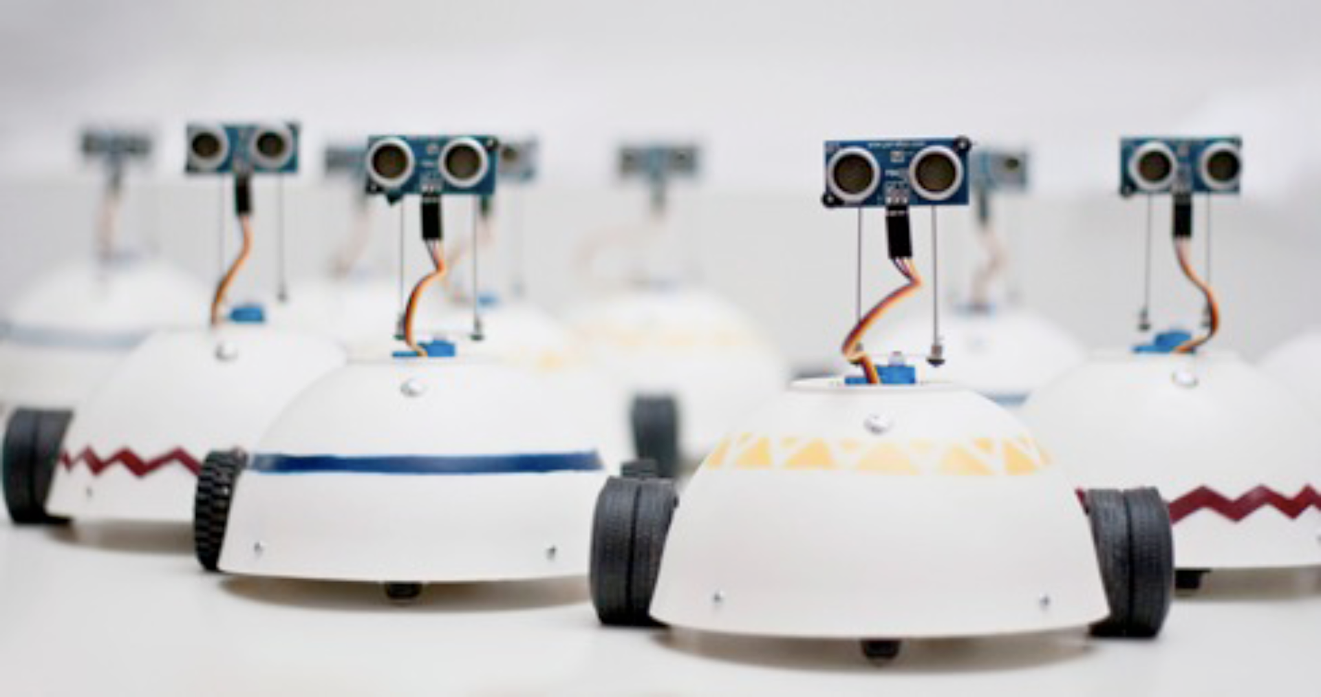 In the fields of robotics and interactive devices the development of autonomous machines that can effectively sense and respond to humans is still complex and difficult to achieve. There are a great many ways to sense objects using sensors which can measure distance for example but despite this they all have their drawbacks and the majority cannot distinguish between an inanimate object and a human. In robotics it is necessary to employ many different sensors in tandem, such as infrared sensors, ultrasonic sensors and computer vision, in order for the robot to sense its surrounding environment. Influencia goes some way to exploring this realm by employing just two sensors to create a simple yet effective way to sense and respond to humans. The piece simultaneously explores the issues of how to sense humans and how machines can autonomously interact in a meaningful way with humans. How should machines interact with humans and what type of relationships would we build with independent autonomous machines? In science fiction we see a world populated with autonomous robots and machines which behave similarly to humans and perform human tasks. By employing a specialized heat sensor and ultrasonics we created a swarm of robots that can sense and follow a human whilst avoiding objects and with the use of code we programmed behaviors into the robots as to how they would respond when they encountered a human.