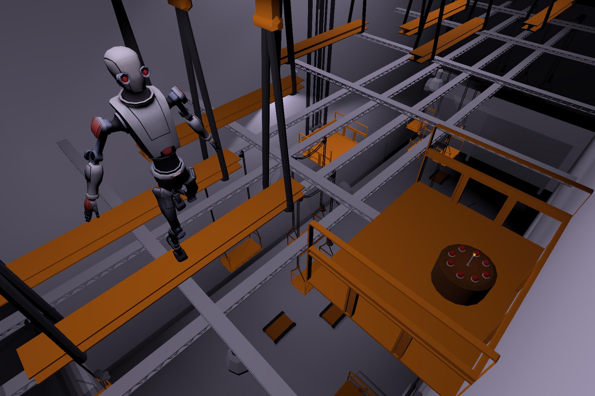 We introduce a short virtual reality experience highlighting a use-case scenario of distance relocation technique in Redirected Jumping to reduce the size requirements for tracked working space of spatial applications. In our demo, the player traverses a virtual factory by jumping between moving platforms with jump distance scaled by gain.