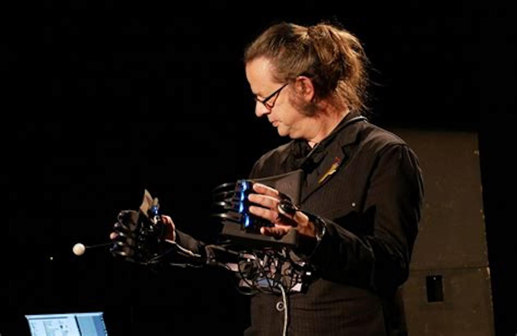 MÉTA INSTRUMENT n°4 Digital at your fingertips The Méta-Instrument N°4 is the latest generation of computer-assisted musical instrument designed by PUCE MUSE. Developed in collaboration with Catherine Hospitel, Dominique Brégeard and Jérémie Gaston-Raoul, the Méta-Instrument 4 is made entirely by 3D printer. Méta-Instrument n°4 is a man/machine interface that reconciles the refinement of hand and touch with digital technology. It enables music and image to be played in real time, with a new virtuosity. It offers a major innovation: a refined and highly precise measurement of touch and hand movements to enable a new virtuosity of digital performance. It is designed for anyone – amateur or. professional musicians, people with reduced mobility, performers using digital technology in real time… Each person can adapt their instrumental configuration to their needs, gestural possibilities and means. From immediate practice to expert gesture, it enables you to build and develop your musical practice.