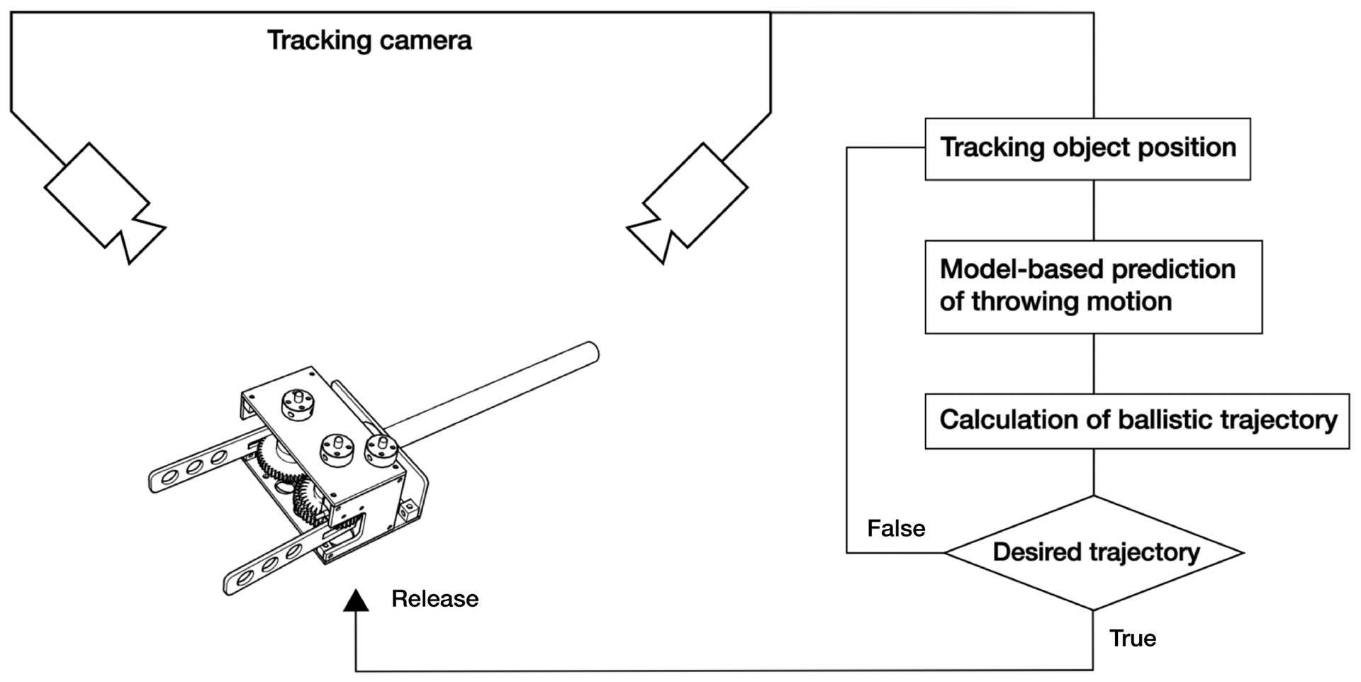 Experiences of hitting targets cause a great feeling. We propose a system for generating this experience computationally. This system consists of external tracking cameras and a handheld device for holding and releasing a thrown object. As a proof-of-concept system, we developed the system based on two key elements: low-latency release device and constant model-based prediction. During the user’s throwing motion, the ballistic trajectory of the thrown object is predicted in real time, and when the trajectory coincides with the desired one, the object is released. We found that we can generate a computational hitting experience within a limited range space.