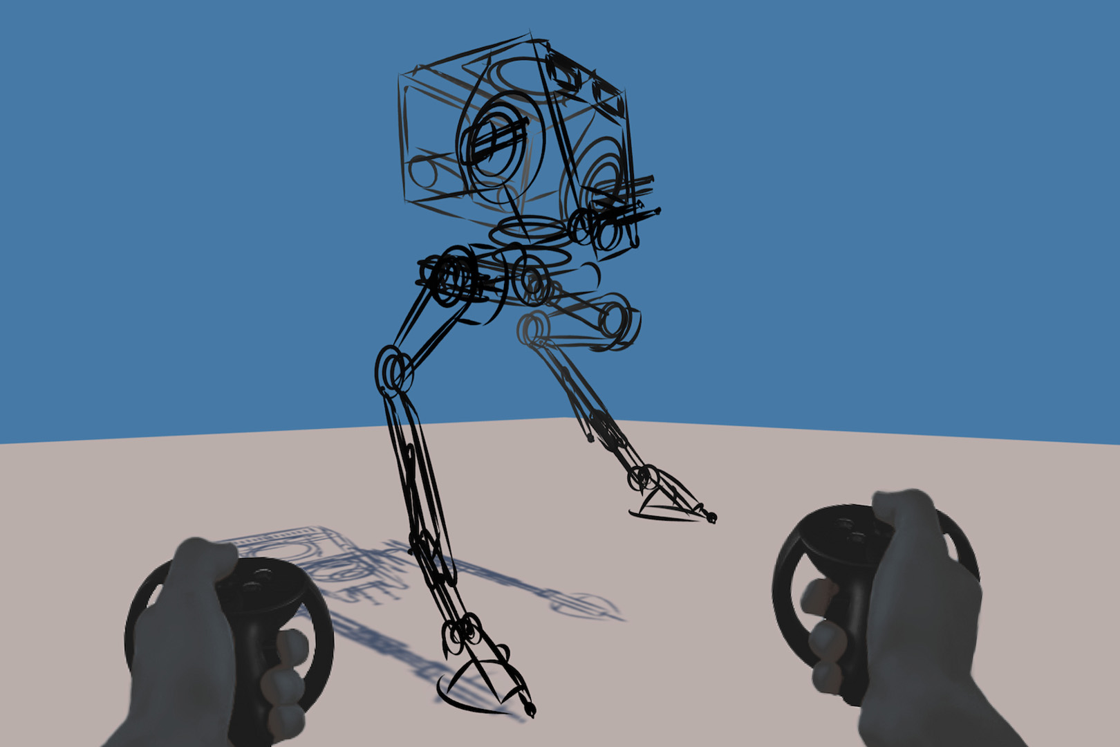 We showcase an interactive system that lets robot designers to directly 3D sketch and experience robots in real scale from an immersive VR workspace. The concept robots learn to walk through reinforcement learning in a physics simulation, allowing the designer to control them in real time using VR controllers.