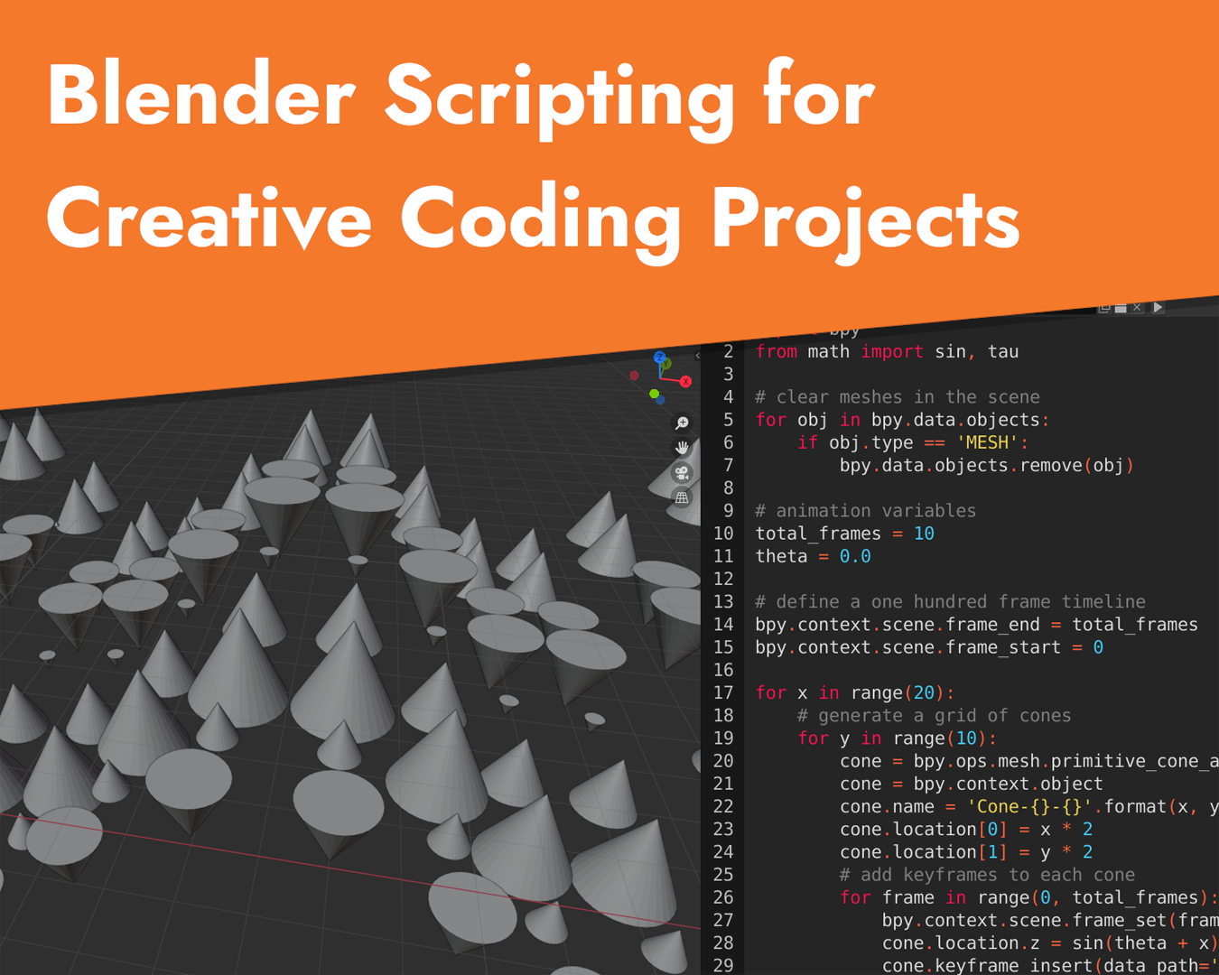 This course will introduce Blender as a tool for creative coding. Blender is open-source software for 3D modelling and animation that can also handle compositing, video editing, and 2D animation. Artists and animators operate Blender using a graphic user interface. It also features a Python API that can do everything the GUI can and more; that means you can use Python code to draw, animate, and manipulate 3D objects. Specifically, the session will cover working with Python scripts in Blender — using Blender’s code editor, info editor, Python console, developer extras, and assistive scripting features. Participants will also learn key Blender API concepts — using the bpy module, and how to address 3D objects, spawn, and manipulate them via different attributes and methods; as well as tips on importing additional Python modules and working with an external code editor. The session’s outcome is an animated pattern of 3D objects generated entirely using code. The course is useful for anybody interested in coding creatively using the Python language. Creative coding has many environments one may use, and Blender is open-source software that allows for easy accessibility and responsive feedback to those new to creative coding. Python in Blender is a fantastic entry point for all, regardless of previous 3D experience, giving users a powerful render engine to output code-generated motion and still images in high-resolution formats. It also allows for more advanced topics, such as particles, fluid simulations, rigid body and physics simulations, volumetric dynamics and more. Attendees can code along during the session or just watch (and ask questions). Although this session focuses on the creative coding applications of Blender’s Python scripting interface, one can apply the concepts in this course in other areas, such as productivity enhancement, procedural and generative creation and more.