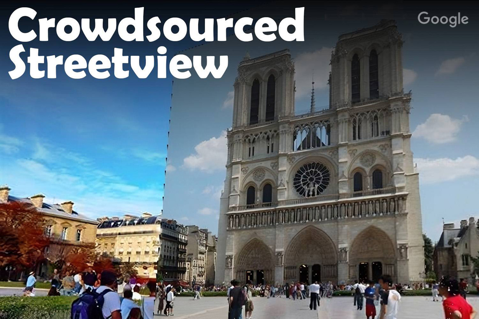 Crowdsourced Streetview enhances Google Streetview with real-time imagery updates by leveraging crowd-sourced images from social media platforms to align and overlay these images onto existing Streetview data and provide the most current visual representation of streets, landmarks, and neighborhoods.