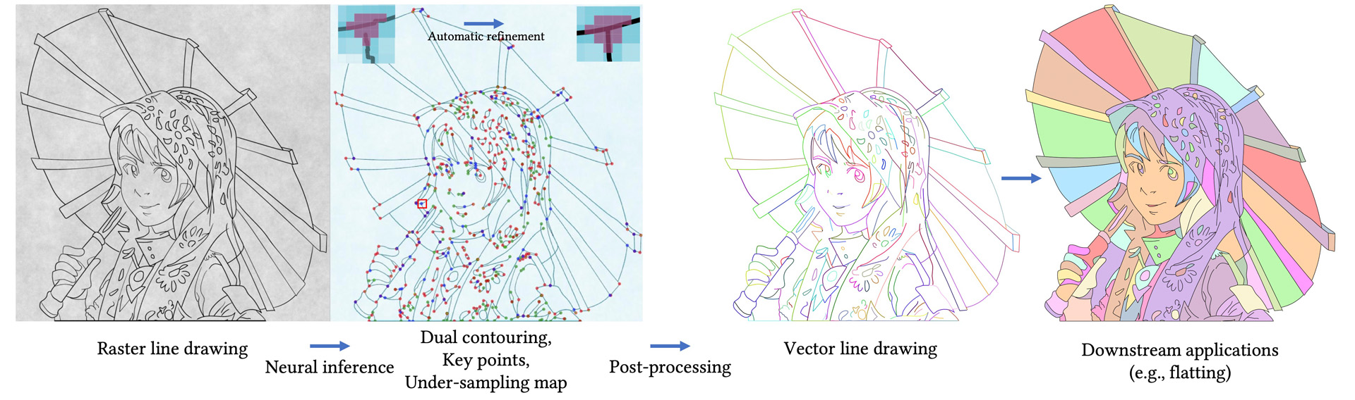 Ivan Puhachov, William Neveu, Edward Chien, and Mikhail Bessmeltsev. 2021. Keypoint-Driven Line Drawing Vectorization via PolyVector Flow. ACM Transactions on Graphics 40, 6 (Dec. 2021), 1–17.