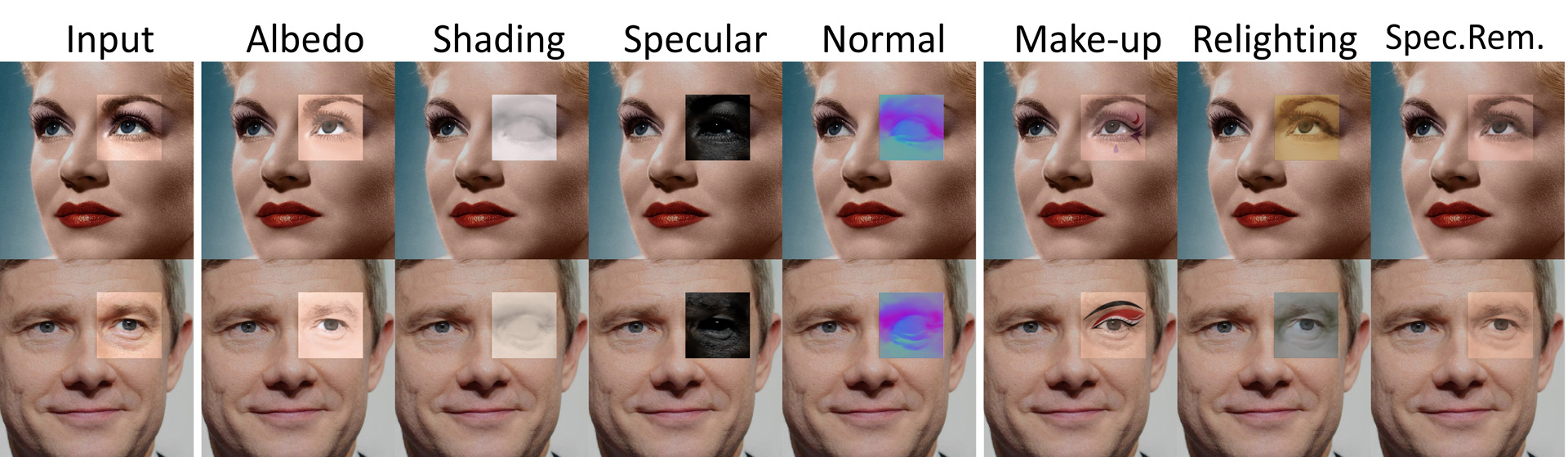 Chen Li, Kun Zhou, and Stephen Lin. 2014. Intrinsic face image decomposition with human face priors. In Computer Vision?ECCV 2014: 13th European Conference, Zurich, Switzerland, September 6-12, 2014, Proceedings, Part V 13. Springer, 218?233.