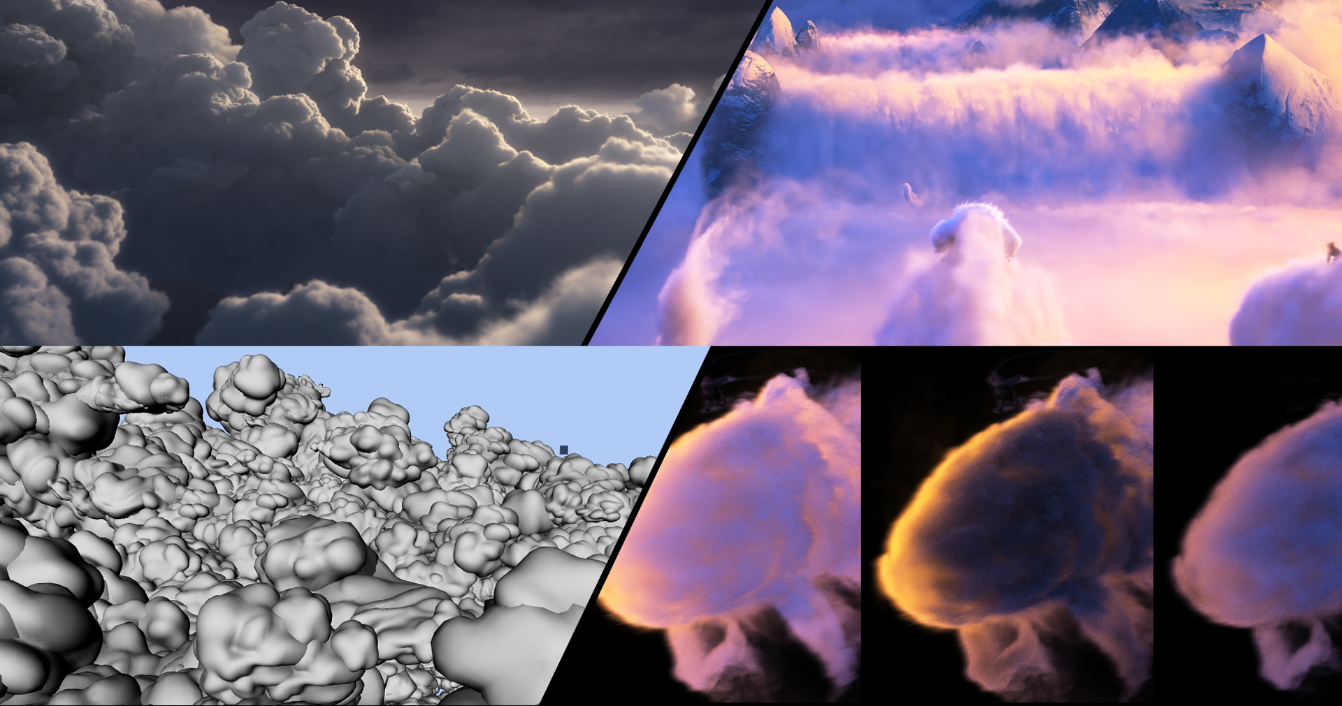 Creating realistic 3-D Clouds has been studied extensively in various formats. Despite a long history of research, it is still challenging to produce vast scenes with clouds especially when characters must be able to arbitrarily fly through and interact with the clouds. Artists at DreamWorks are often tasked with constructing highly complex sequences with clouds. For instance, all three How to Train Your Dragon films required building a workflow where clouds can be freely set-dressed and simulated around flying characters. Cloud river and cloud koi fishes with characters riding on top were created for Abominable. In these films, clouds are used not simply as background environment objects but are carefully placed in each shot to enhance the storytelling. With our ample history of building complex sequences with clouds, DreamWorks has a robust and flexible workflow for generating and managing a massive number of clouds.