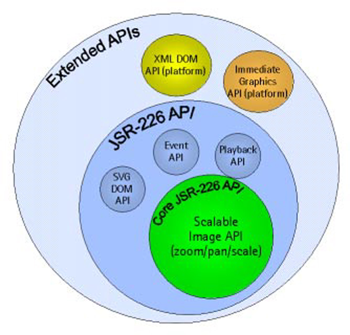An API for rendering and manipulating SVG Tiny content with minimal programming on J2ME/MIDP devices. The API introduces scalable graphics to MIDP devices and defines a layered architecture for various applications of SVG Tiny (as a scalable image format, animation environment, XML language).