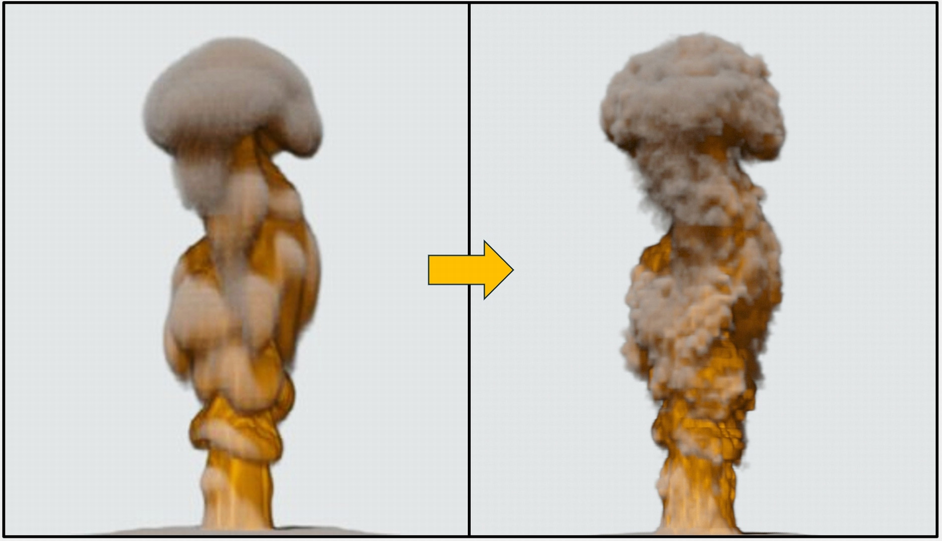 This poster presents a new turbulence transfer method to efficiently synthesize high resolution 3D smoke by using 2D turbulence transfer.