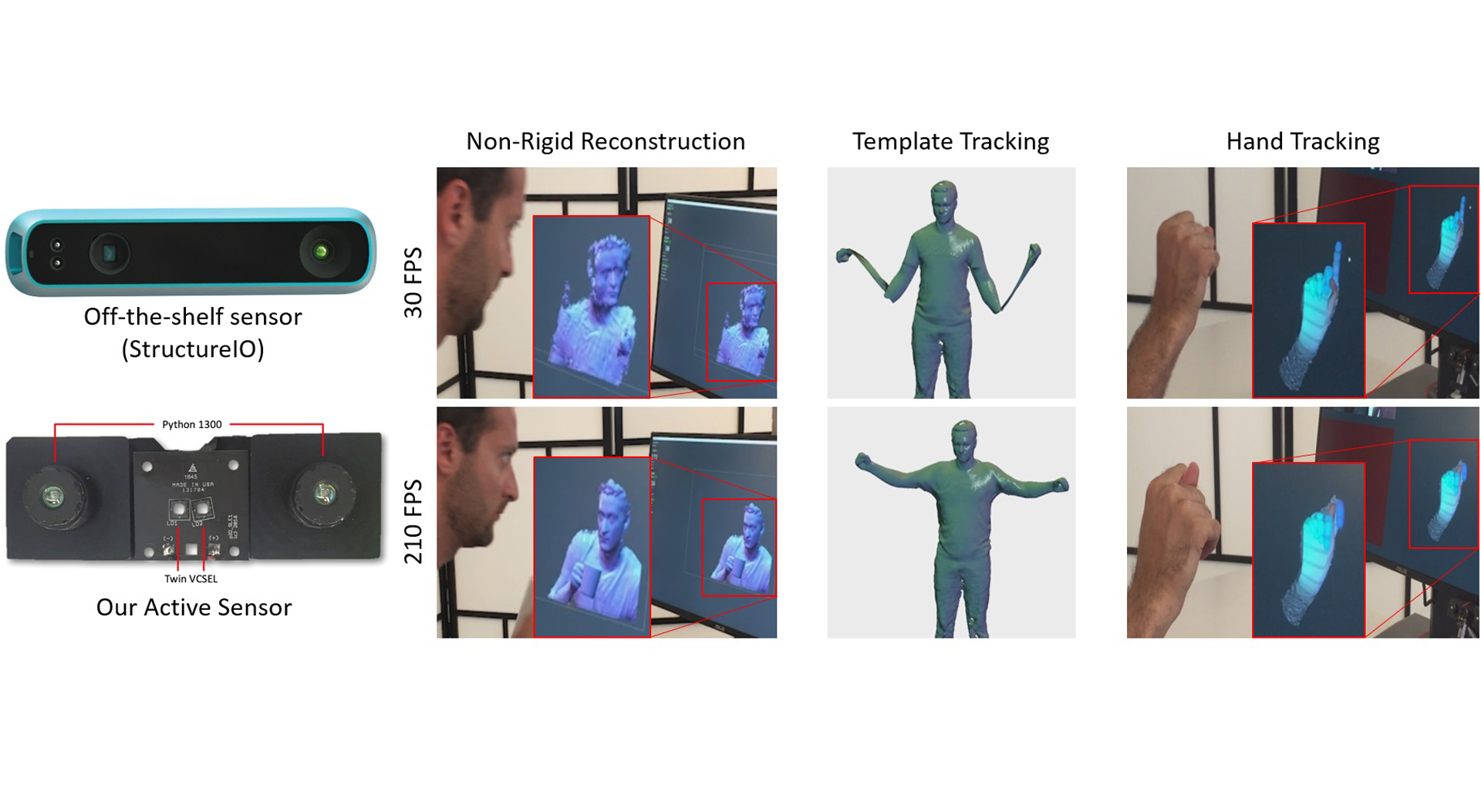 The advent of consumer depth cameras has incited the development of a new cohort of algorithms tackling challenging computer vision problems. The primary reason is that depth provides direct geometric information that is largely invariant to texture and illumination. As such, substantial progress has been made in human and object pose estimation, 3D reconstruction and simultaneous localization and mapping. Most of these algorithms naturally benefit from the ability to accurately track the pose of an object or scene of interest from one frame to the next. However, commercially available depth sensors (typically running at 30fps) can allow for large inter-frame motions to occur that make such tracking problematic. A high frame rate depth camera would thus greatly ameliorate these issues, and further increase the tractability of these computer vision problems. Nonetheless, the depth accuracy of recent systems for high-speed depth estimation [Fanello et al. 2017b] can degrade at high frame rates. This is because the active illumination employed produces a low SNR and thus a high exposure time is required to obtain a dense accurate depth image. Furthermore in the presence of rapid motion, longer exposure times produce artifacts due to motion blur, and necessitates a lower frame rate that introduces large inter-frame motion that often yield tracking failures. In contrast, this paper proposes a novel combination of hardware and software components that avoids the need to compromise between a dense accurate depth map and a high frame rate. We document the creation of a full 3D capture system for high speed and quality depth estimation, and demonstrate its advantages in a variety of tracking and reconstruction tasks. We extend the state of the art active stereo algorithm presented in Fanello et al. [2017b] by adding a space-time feature in the matching phase. We also propose a machine learning based depth refinement step that is an order of magnitude faster than traditional postprocessing methods. We quantitatively and qualitatively demonstrate the benefits of the proposed algorithms in the acquisition of geometry in motion. Our pipeline executes in 1.1ms leveraging modern GPUs and off-the-shelf cameras and illumination components. We show how the sensor can be employed in many different applications, from [non-]rigid reconstructions to hand/face tracking. Further, we show many advantages over existing state of the art depth camera technologies beyond framerate, including latency, motion artifacts, multi-path errors, and multi-sensor interference.