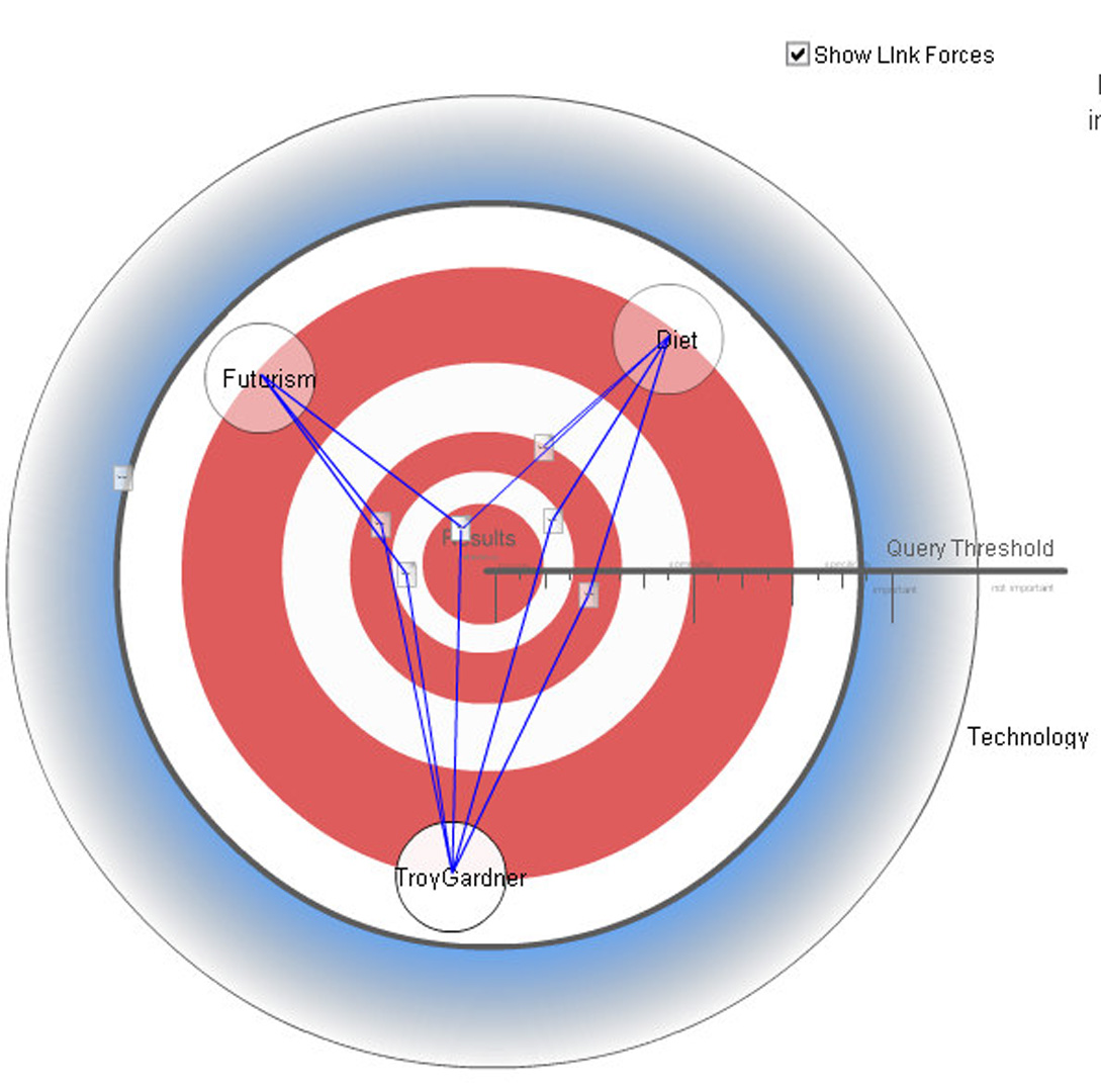 A blog or wiki entry can include a multitude of topics, so it’s challenging to fit it cleanly into a conventional hierarchical tree. This presentation summarizes the visual query interface developed to allow users to playfully explore the intersection of their interests with a wide range of content.