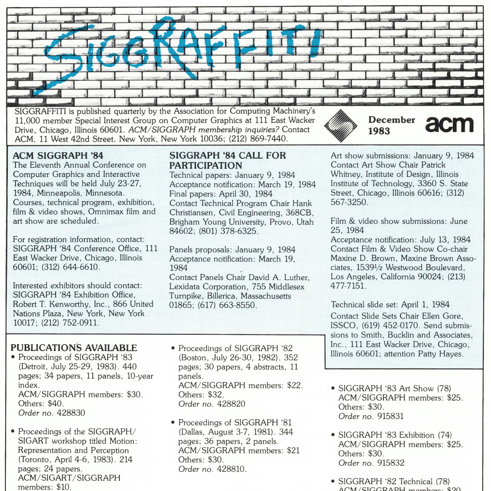 “1983 SIGGRAPHITI”, Dec. 1983 – ACM SIGGRAPH HISTORY ARCHIVES