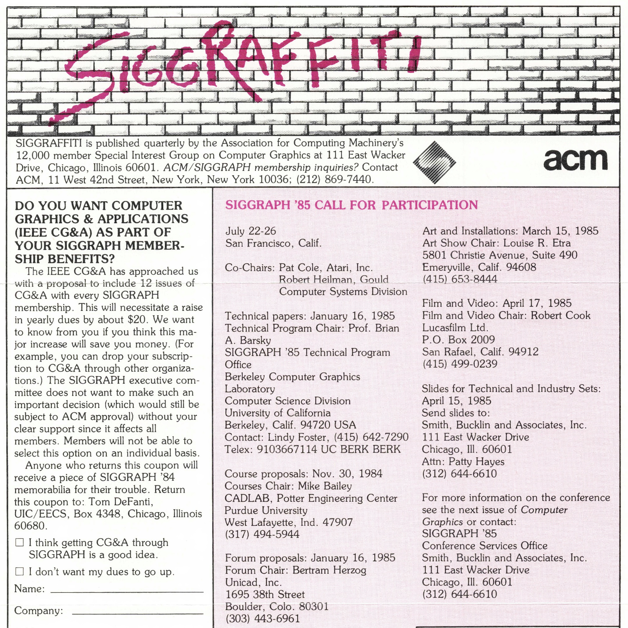 “1984 SIGGRAPHITI: Sept, Oct, Nov or Dec (Unknown Month)”, 1984 – ACM SIGGRAPH HISTORY ARCHIVES
