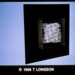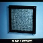 - Tony Longson, 2832 N. Santa Anita Ave., Altadena, CA 9100 I; Square Tonal Drawing #2. 1980 serigraph on plexiglass, 30″ x 30″ x 4″; CYBER microfilm plotter using FORTRAN.?