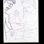 - Susan Brown, 116 Osage Ave., Los Altos, CA 94022; Violin 6. 1985 computer drawing, 20″ x 25″; Indiana University and Hewlett Packard, Palo Alto, CA; H P3000 and HP plotter using software written by artist.?