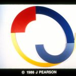- John Pearson, 290 Elm St., Oberlin, OH 44074; Remembrances #5. 1986 acrylic on shaped canvas, 74″ x 93″ from studies on AT&T PC 6300 with TARGA 16 board and HP plotter 7475A using ARTS2 software by John Cocula.?