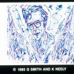 - Gregg Smith and Kathy Neely, 106 W. 13 St., New York, NY 10011; Colin Wilson-Distorted in Triangles. 1985 inkjet print, 11-1 / 2″ x 15″; Artronics Inc., South Plainfield, NJ; Artronics PC 2000 and ACT-II Chromajet using system software.?