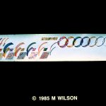 - Mark Wilson, P.O. Box 23, West Cornwall, CT 06796; Long Skew 8. 1985 pigmented ink on paper, 20″ x 96″; IBM PCjr, Tektronix 4663 using artist’s software.?